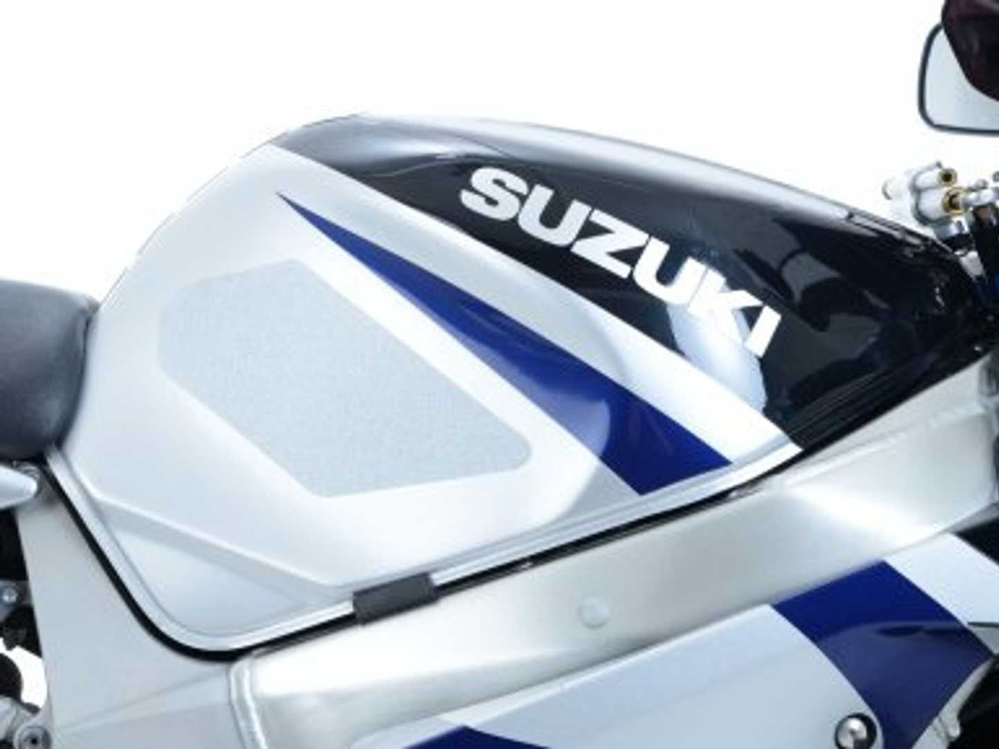 The unique R&G texture was specifically designed to be both soft and durable, providing the rider with the grip and feel one needs to assist in better bike control, enabling the rider to maintain a stable body position while cornering and braking, whilst also relieving fatigue and providing the rider with complete confidence allowing him/her to fully focus on the road (or track) ahead instead of slipping and sliding on the tank.