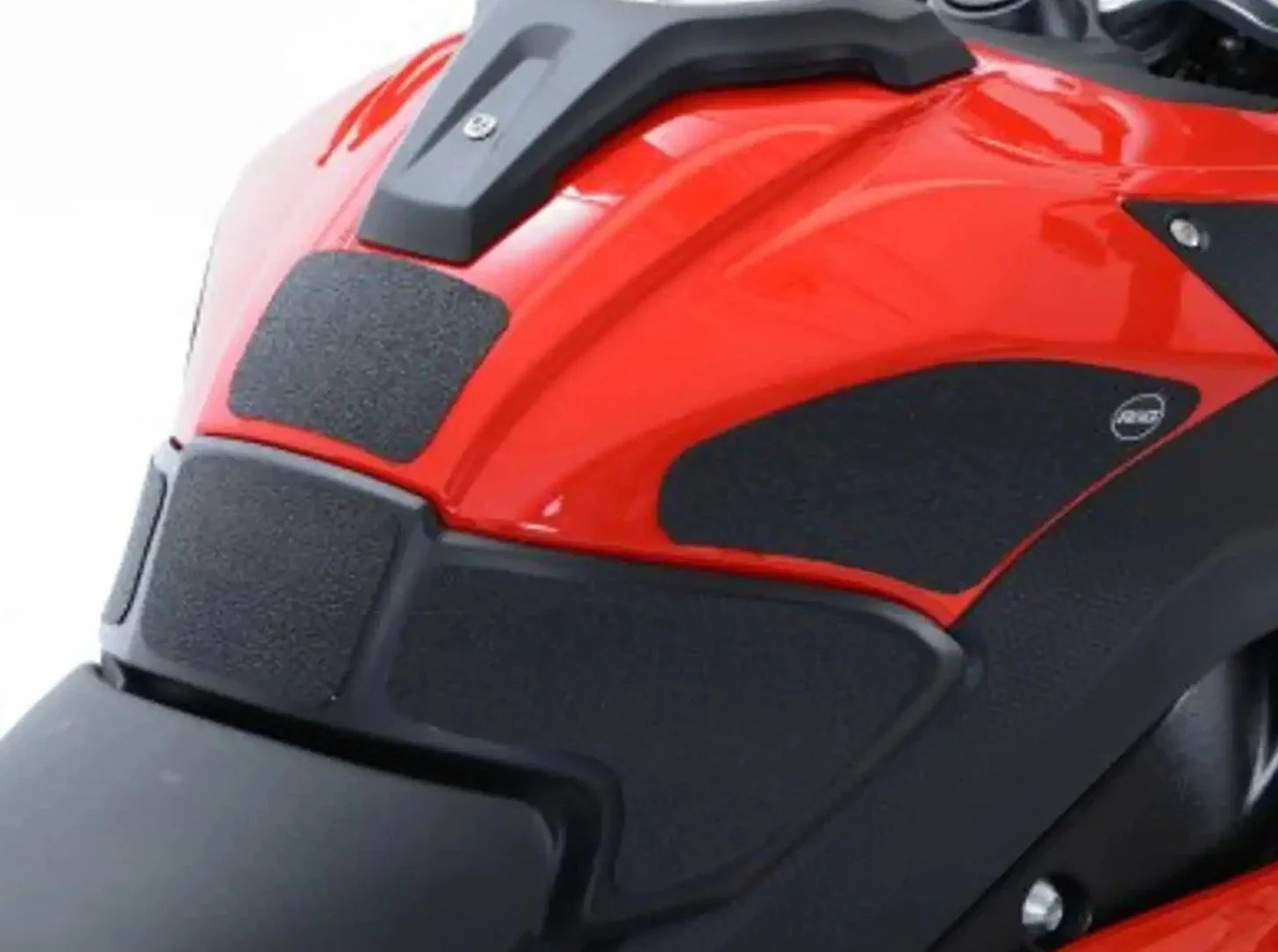The unique R&G texture was specifically designed to be both soft and durable, providing the rider with the grip and feel one needs to assist in better bike control, enabling the rider to maintain a stable body position while cornering and braking, whilst also relieving fatigue and providing the rider with complete confidence allowing him/her to fully focus on the road (or track) ahead instead of slipping and sliding on the tank.