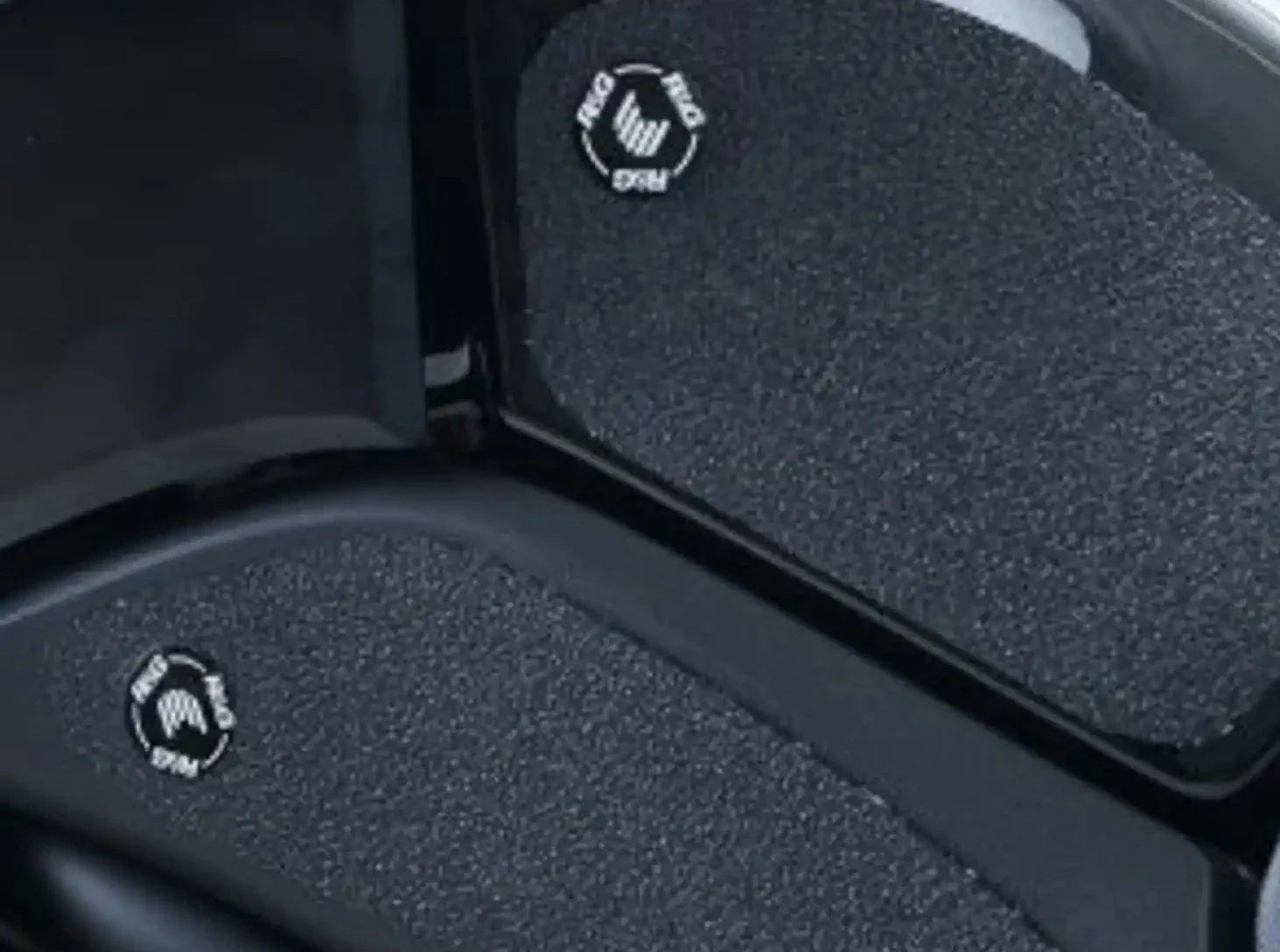 The unique R&G texture was specifically designed to be both soft and durable, providing the rider with the grip and feel one needs to assist in better bike control, enabling the rider to maintain a stable body position while cornering and braking, whilst also relieving fatigue and providing the rider with complete confidence allowing him/her to fully focus on the road (or track) ahead instead of slipping and sliding on the tank.