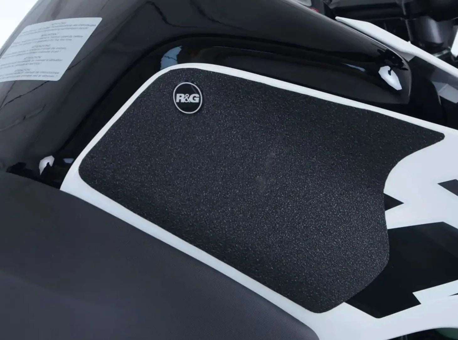 The unique R&G texture was specifically designed to be both soft and durable, providing the rider with the grip and feel one needs to assist in better bike control, enabling the rider to maintain a stable body position while cornering and braking, whilst also relieving fatigue and providing the rider with complete confidence allowing him/her to fully focus on the road (or track) ahead instead of slipping and sliding on the tank.