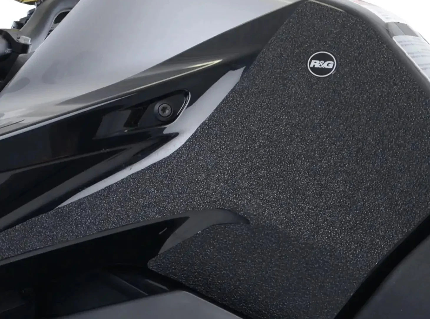 The unique R&G texture was specifically designed to be both soft and durable, providing the rider with the grip and feel one needs to assist in better bike control, enabling the rider to maintain a stable body position while cornering and braking, whilst also relieving fatigue and providing the rider with complete confidence allowing him/her to fully focus on the road (or track) ahead instead of slipping and sliding on the tank.