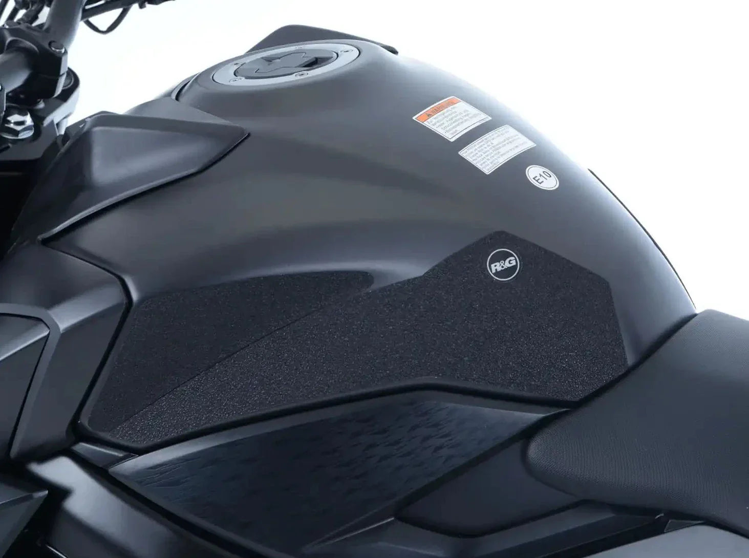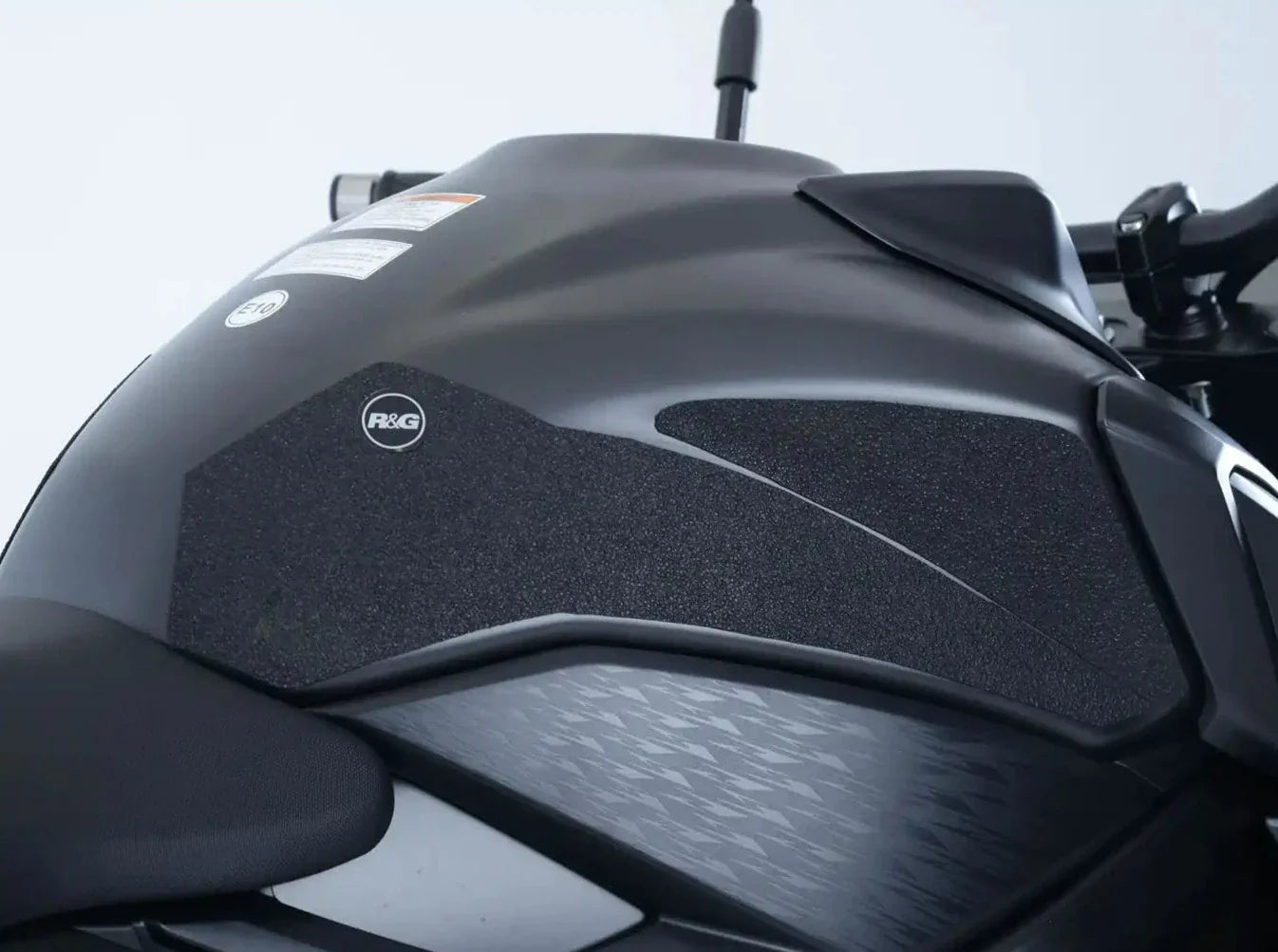 The unique R&G texture was specifically designed to be both soft and durable, providing the rider with the grip and feel one needs to assist in better bike control, enabling the rider to maintain a stable body position while cornering and braking, whilst also relieving fatigue and providing the rider with complete confidence allowing him/her to fully focus on the road (or track) ahead instead of slipping and sliding on the tank.
