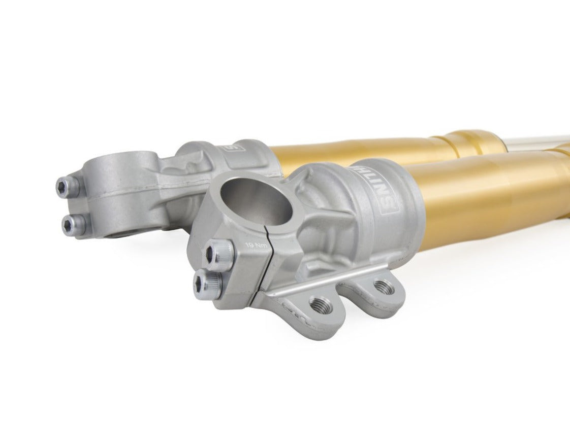 Öhlins offers a 43 mm conventional universal fork for any custom builder that wants to give the bike supreme suspension yet classic style and at the same time get the familiar Öhlins Racing design. They are available in an Öhlins gold version as well as a black version. The technology in this fully adjustable fork has been proven through the years on numerous applications and works for a range of different applications. The fork gives the possibility to adjust spring preload as well as compression and rebound damping adjustment.