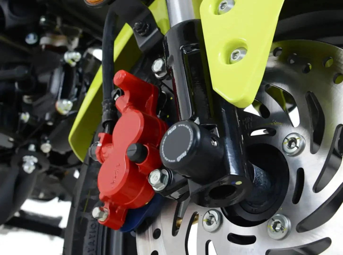 Help to eliminate damage to the front forks, fork bottoms and brake calipers during a crash or drop.
