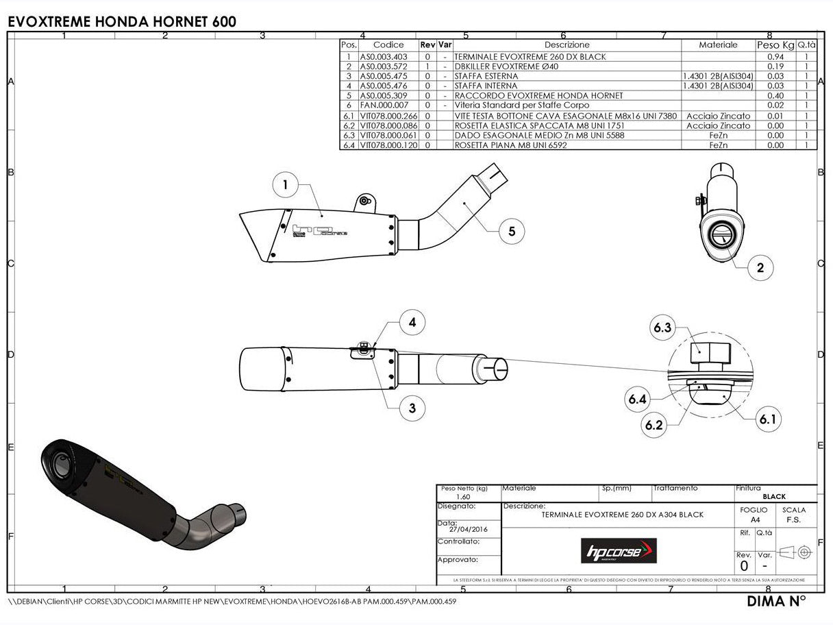 EVOXTREME BLACK by HP Corse for Honda CB600F Hornet.