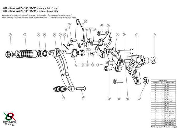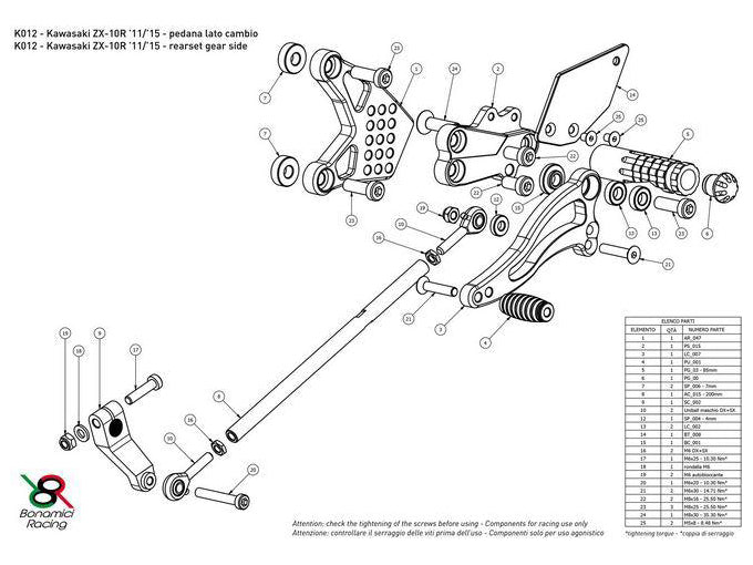K012 - BONAMICI RACING Kawasaki ZX-10R (11/15) Adjustable Rearset