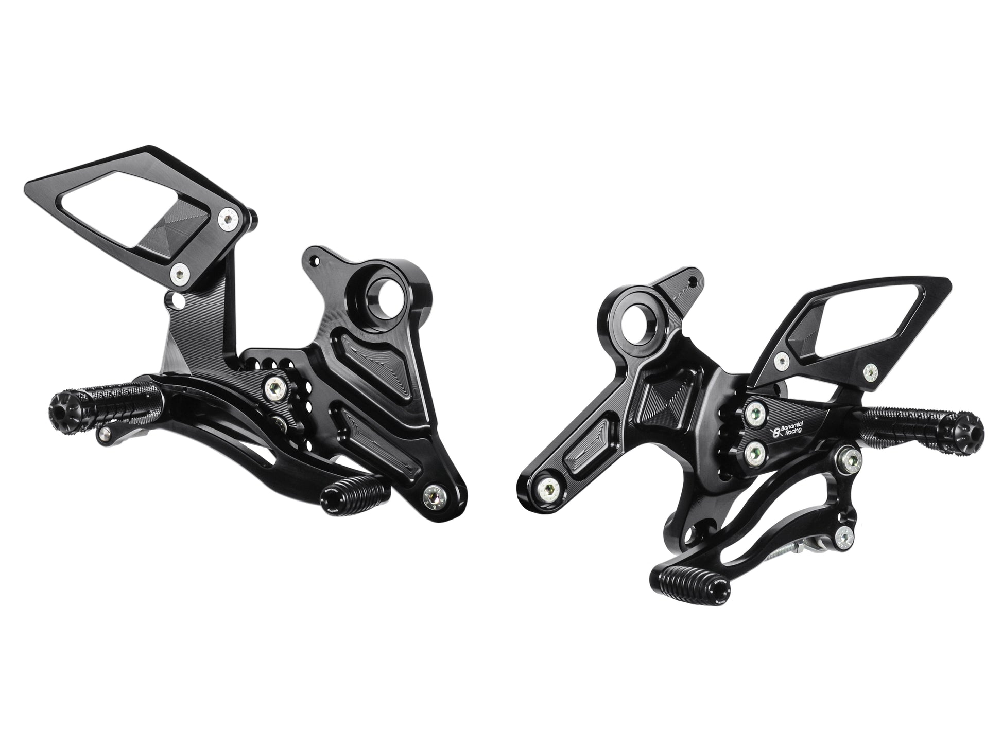 The rearsets use bearings to completely eliminate friction on the foot lever and feature a spring-loaded rear brake lever return. strong, attractive and resistant to mechanical or chemical wear.