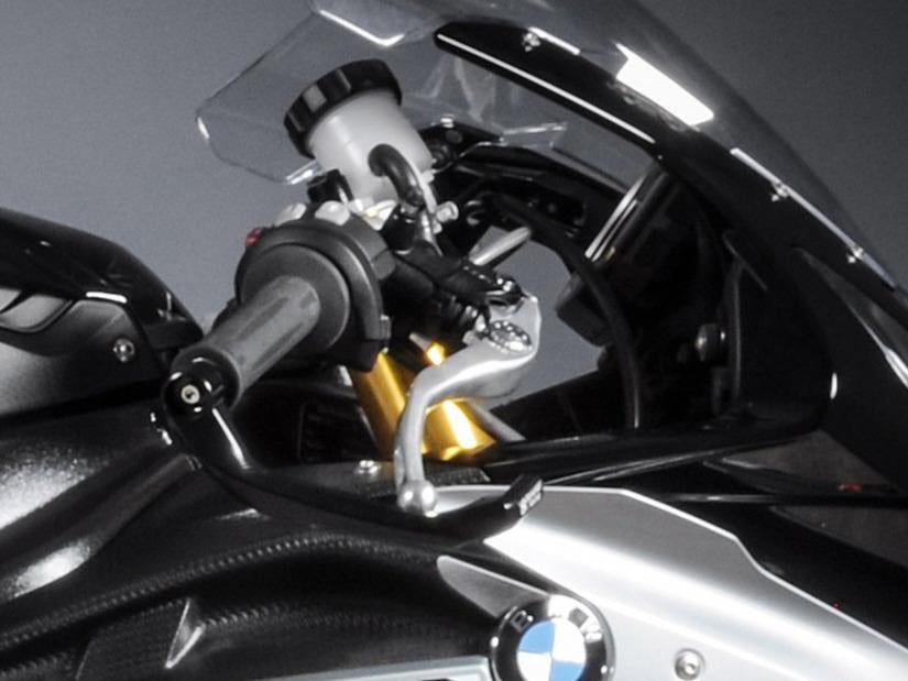 Crafted to emphasize a connected feeling to the bike during cornering, shifting and braking with an aerodynamic air-inlet flow hole that prevents activation (or drag) during high speed. Features a 90 degree upward pivoting design to resist breakage in a crash.
