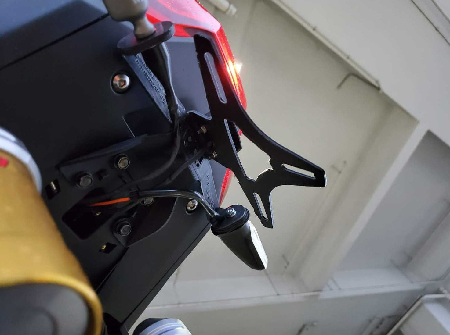 Designed to replace the original large plastic license plate holder and improve the lines of the motorcycle.