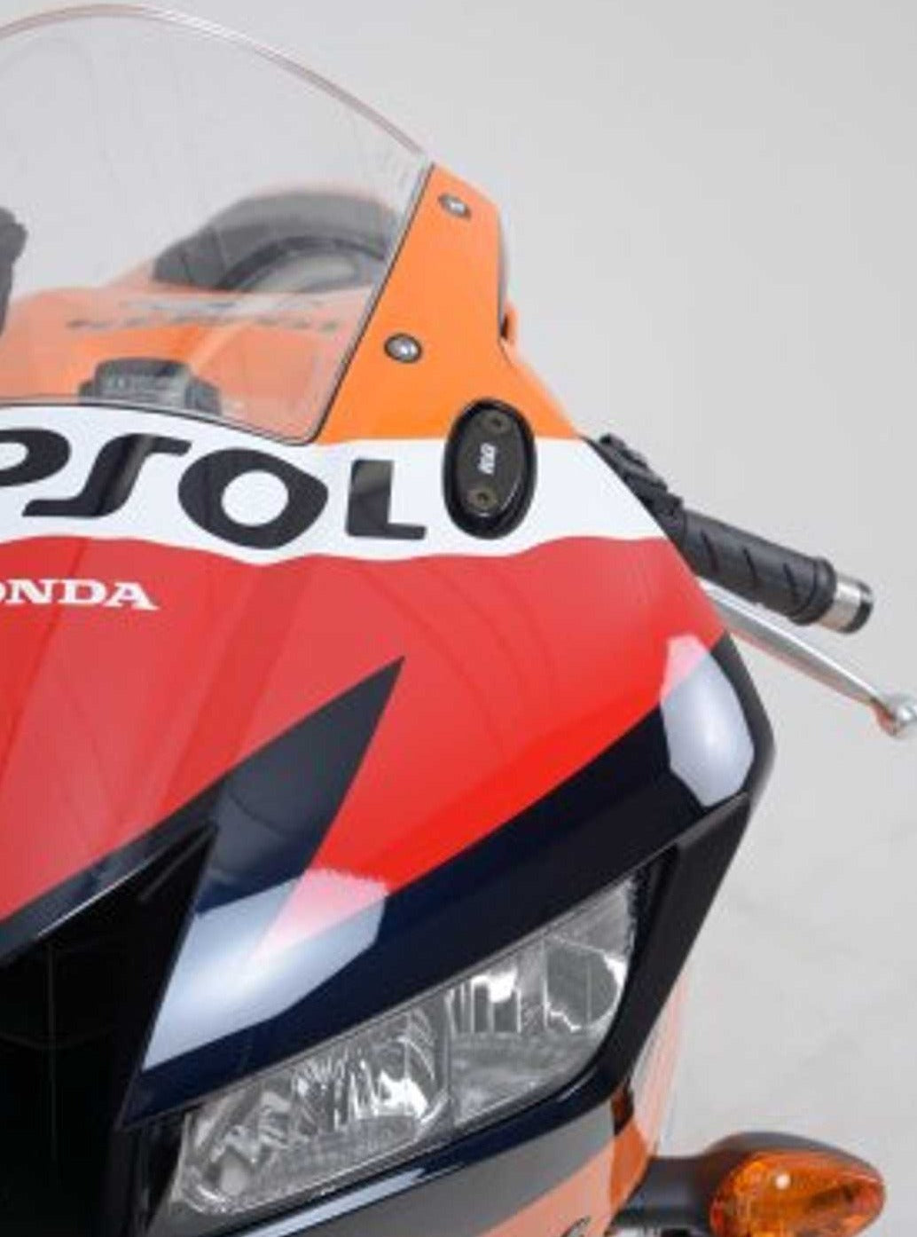 Mirror blanking plates by R&G Racing for Honda / Kawasaki / Yamaha motorcycles.