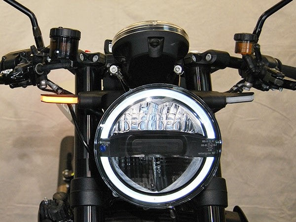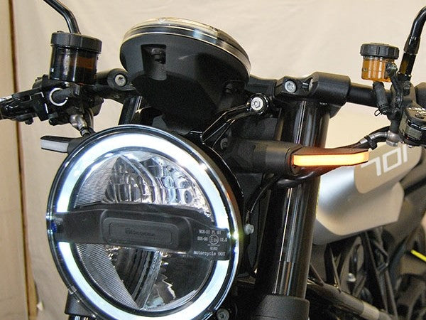 Husqvarna Vitpilen 701 front LED turn signals from New Rage Cycles is a custom design helping you save time and money on installation, and lets you plug right in and ride on!