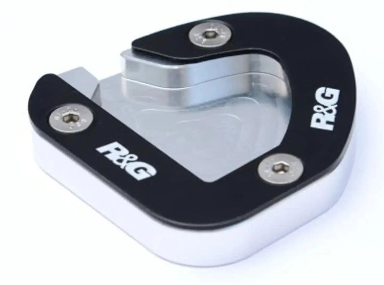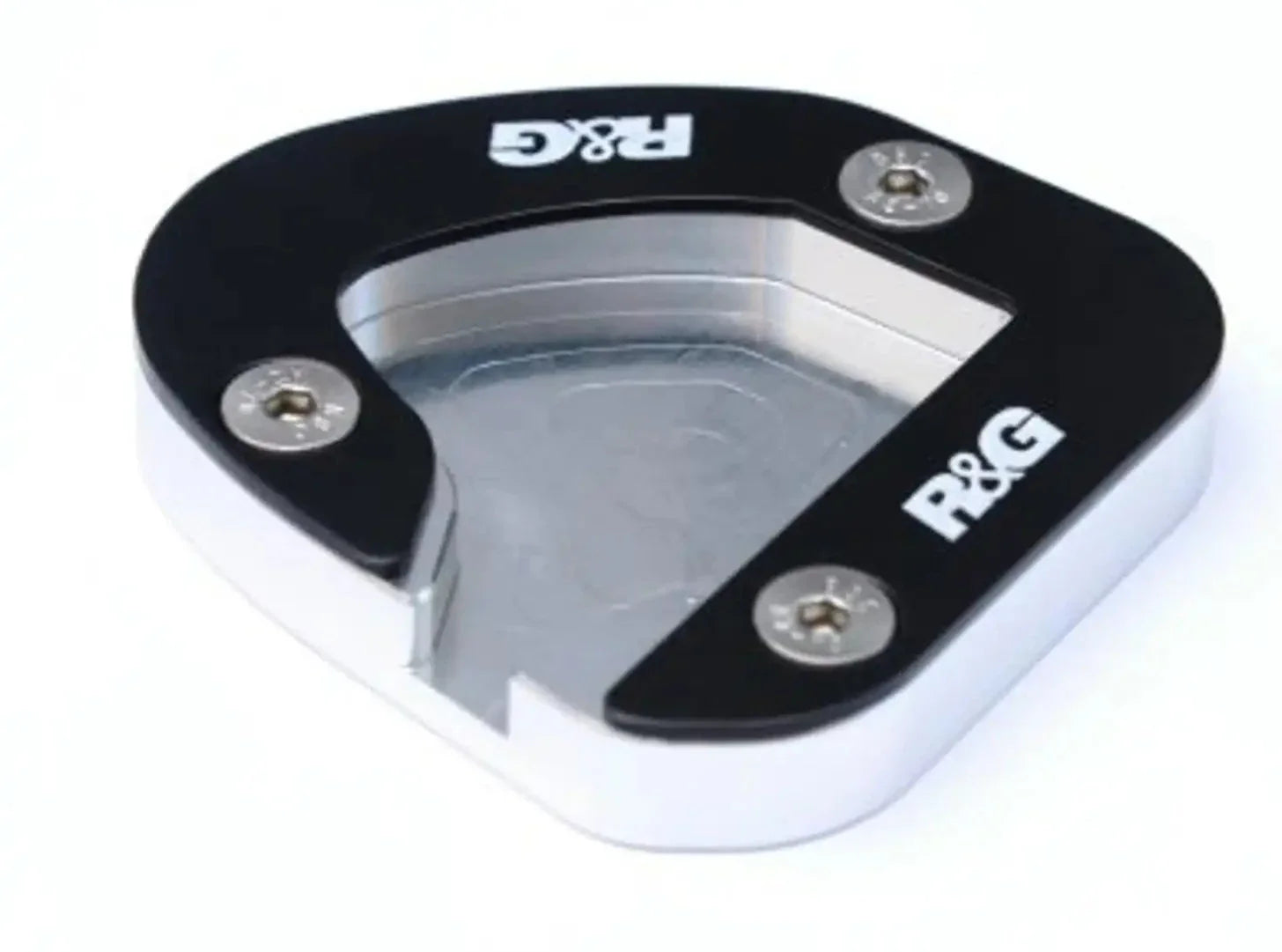Bolts onto the bottom of the side stand to enlarge the original’s footprint by up to 100%, significantly spreading the load placed upon it, to help prevent the stand ‘piercing’ the ground.