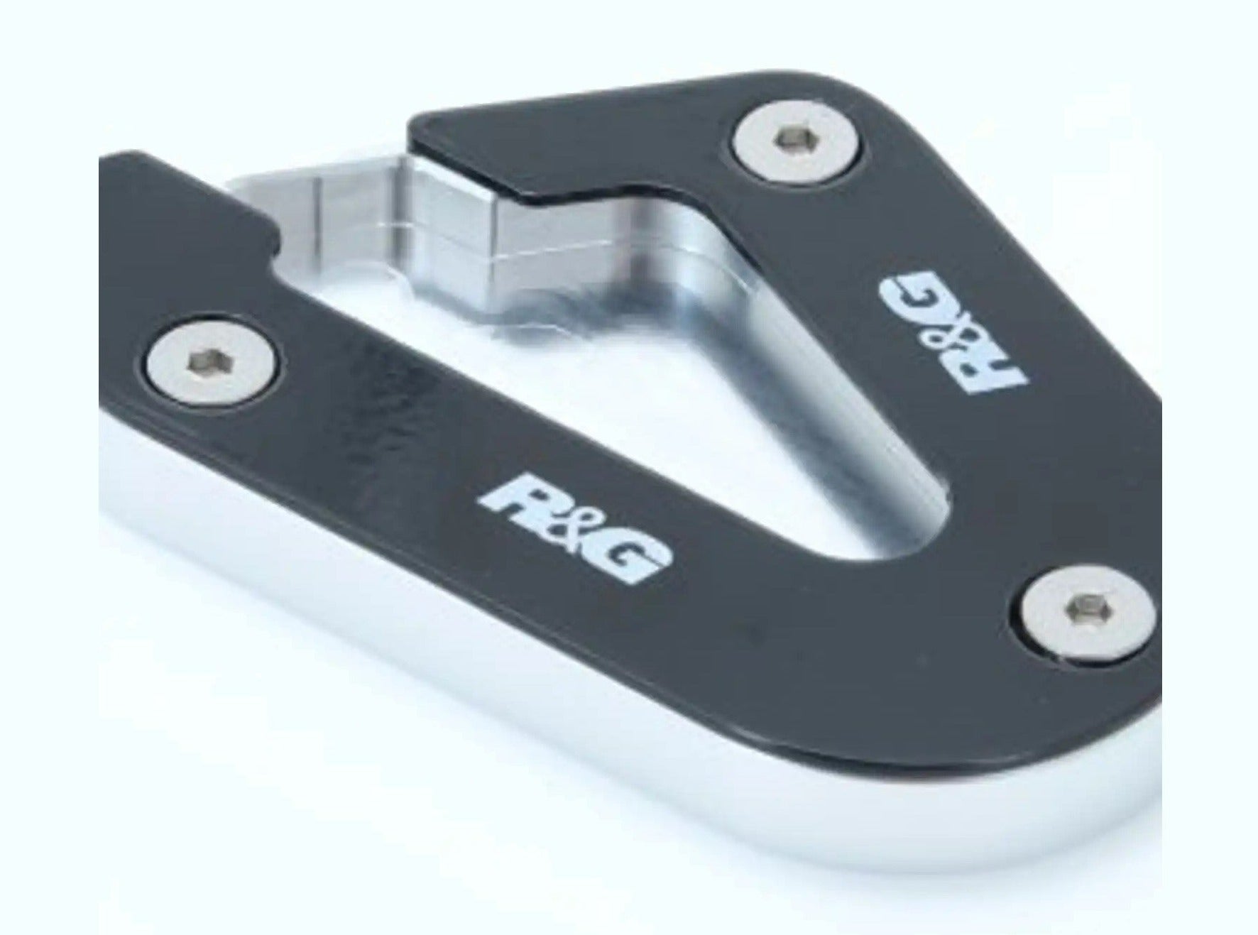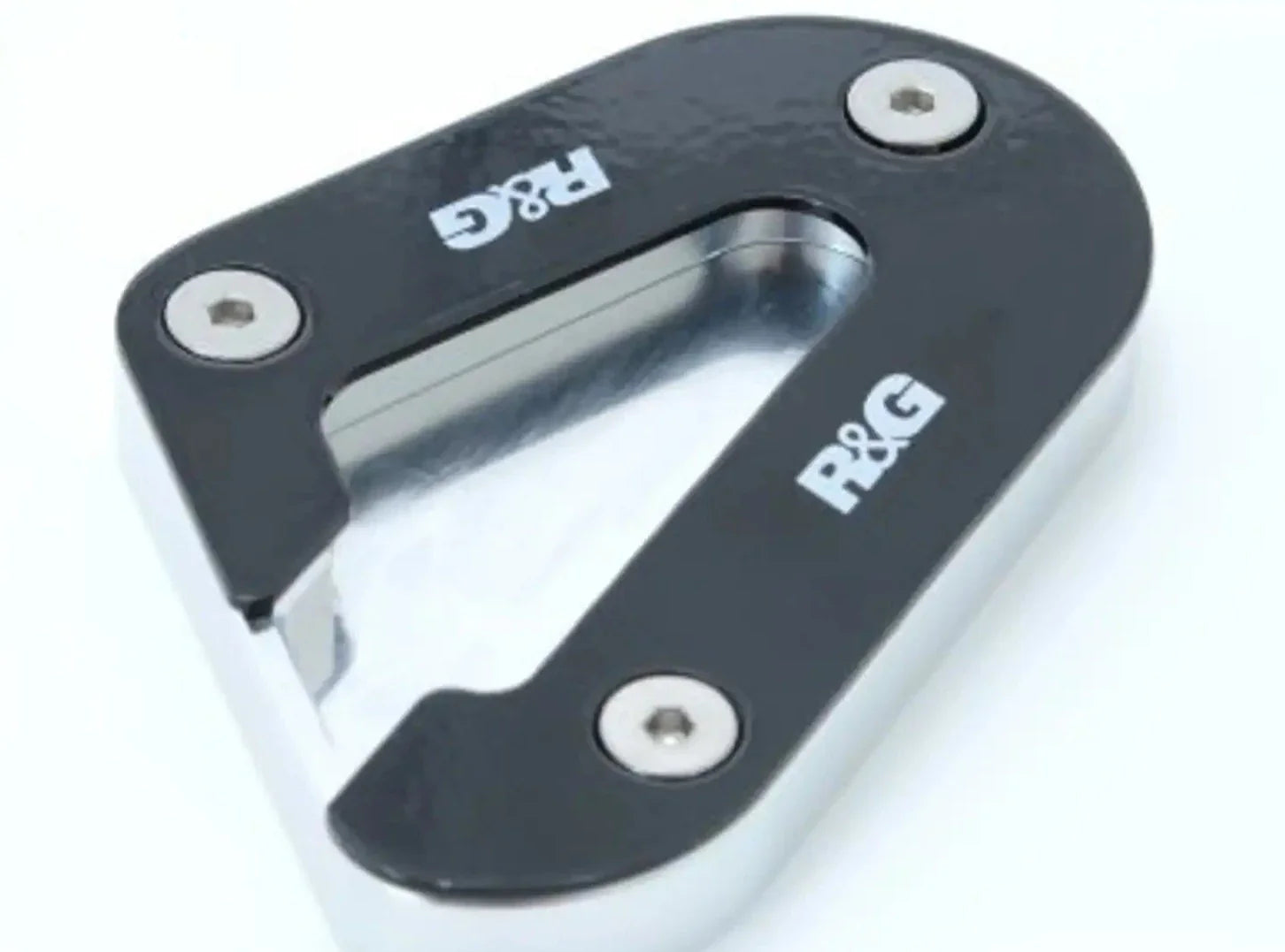Bolts onto the bottom of the side stand to enlarge the original’s footprint by up to 100%, significantly spreading the load placed upon it, to help prevent the stand ‘piercing’ the ground.
