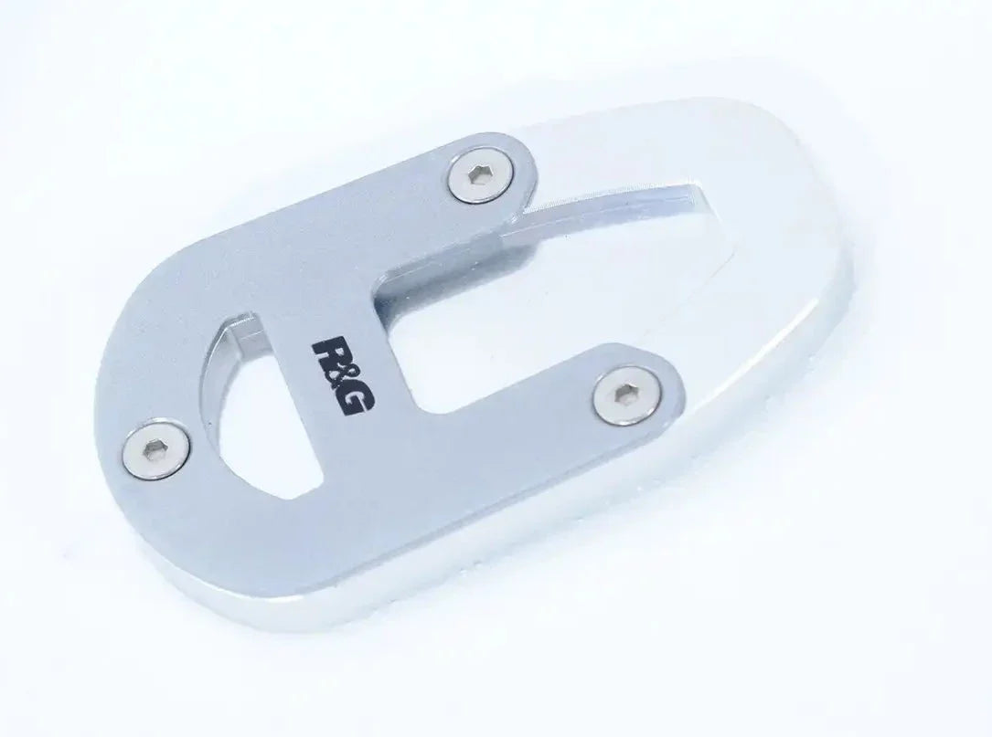 Bolts onto the bottom of the side stand to enlarge the original’s footprint by up to 100%, significantly spreading the load placed upon it, to help prevent the stand ‘piercing’ the ground.