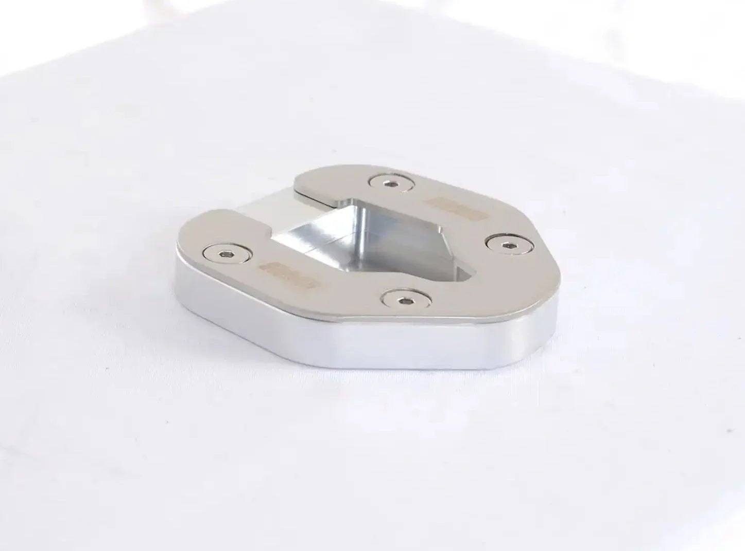 Bolts onto the bottom of the side stand to enlarge the original’s footprint by up to 100%, significantly spreading the load placed upon it, to help prevent the stand ‘piercing’ the ground.