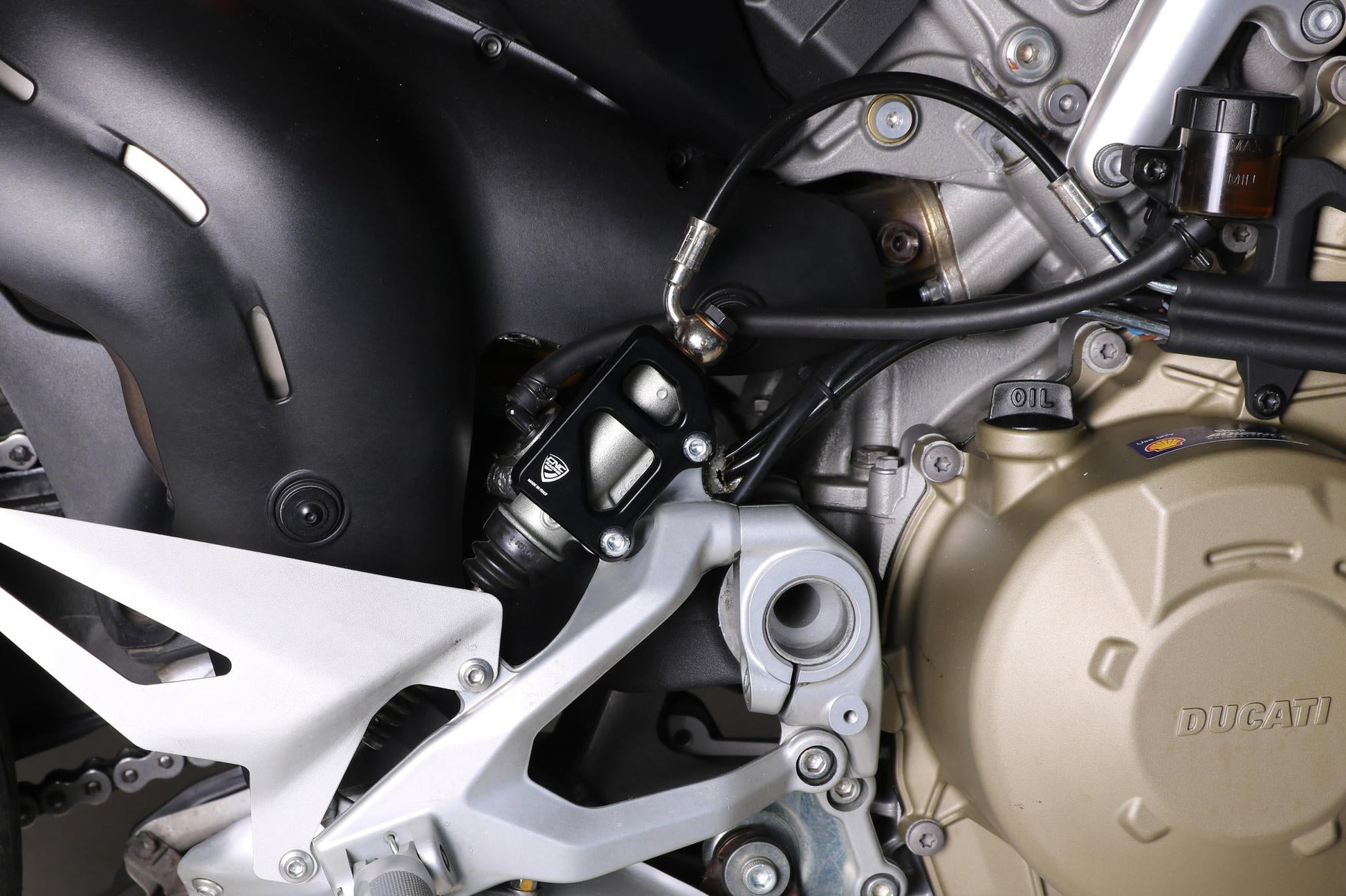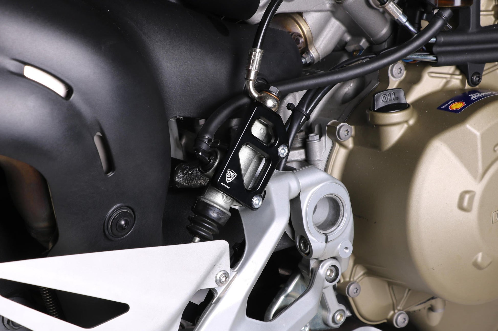 Rear brake master cylinder guard by CNC Racing for Ducati motorcycles.