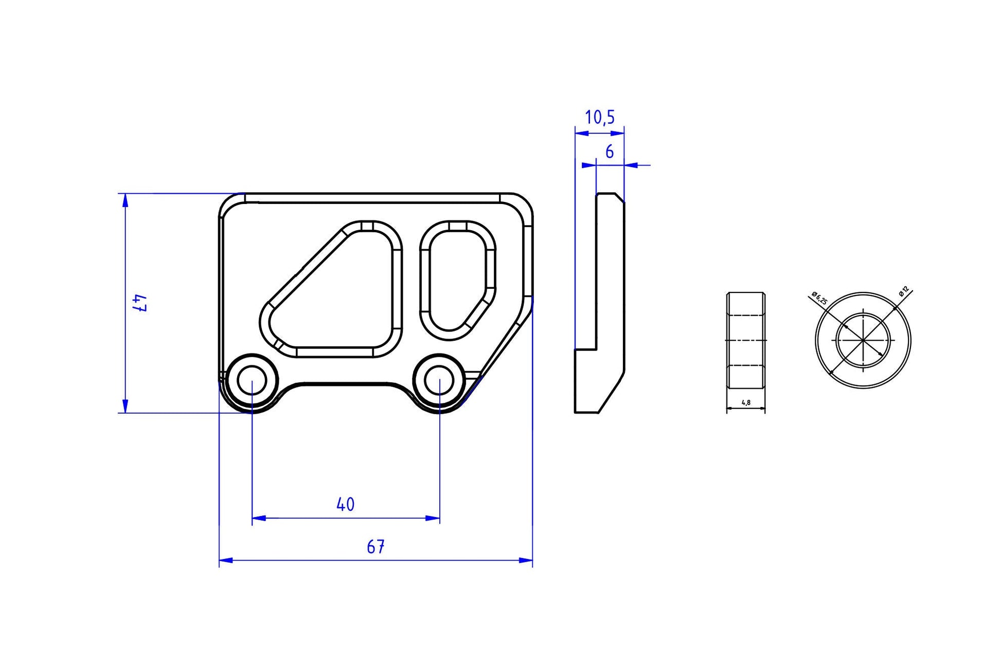 CNC machined of light alloy billet, anodized surface finish.