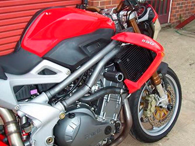 Frame crash protection sliders by R&G Racing for Benelli TNT 1130 Cafe Racer.