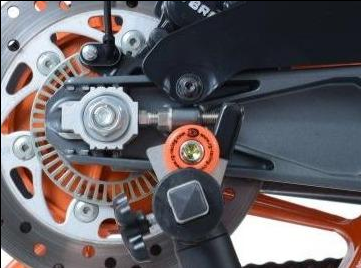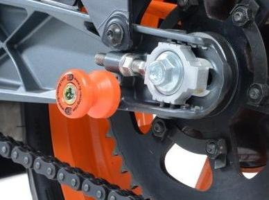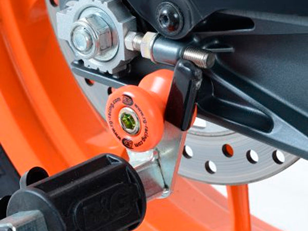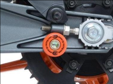 R&G Racing cotton reels locate on the paddock stand mounting points on the rear swingarm, offering protection and functionality in one product.