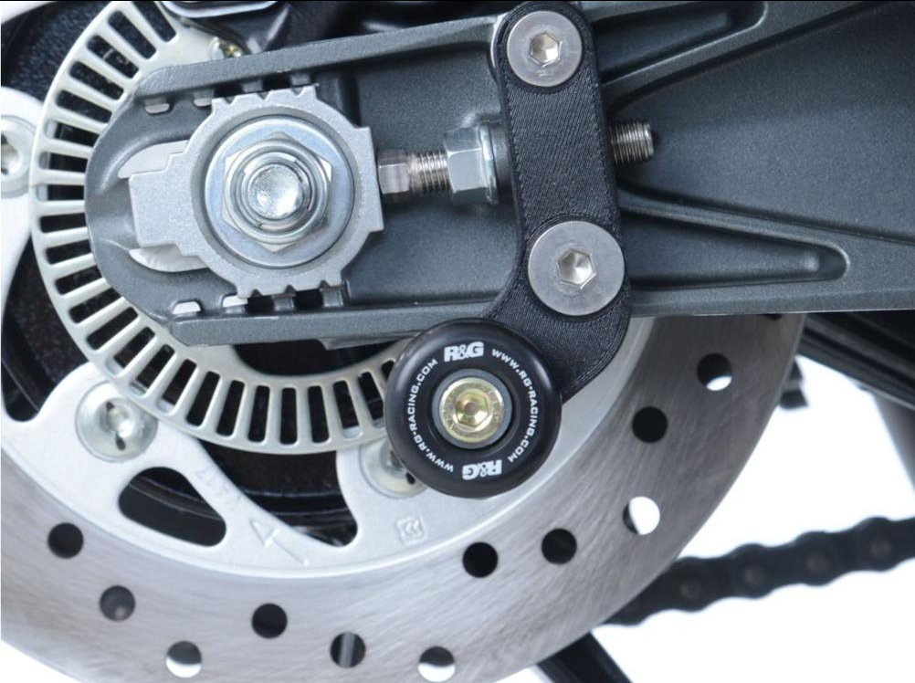R&G offset cotton reels protect the swingarm and core swingarm components from damage in the event of a crash, slide or drop.