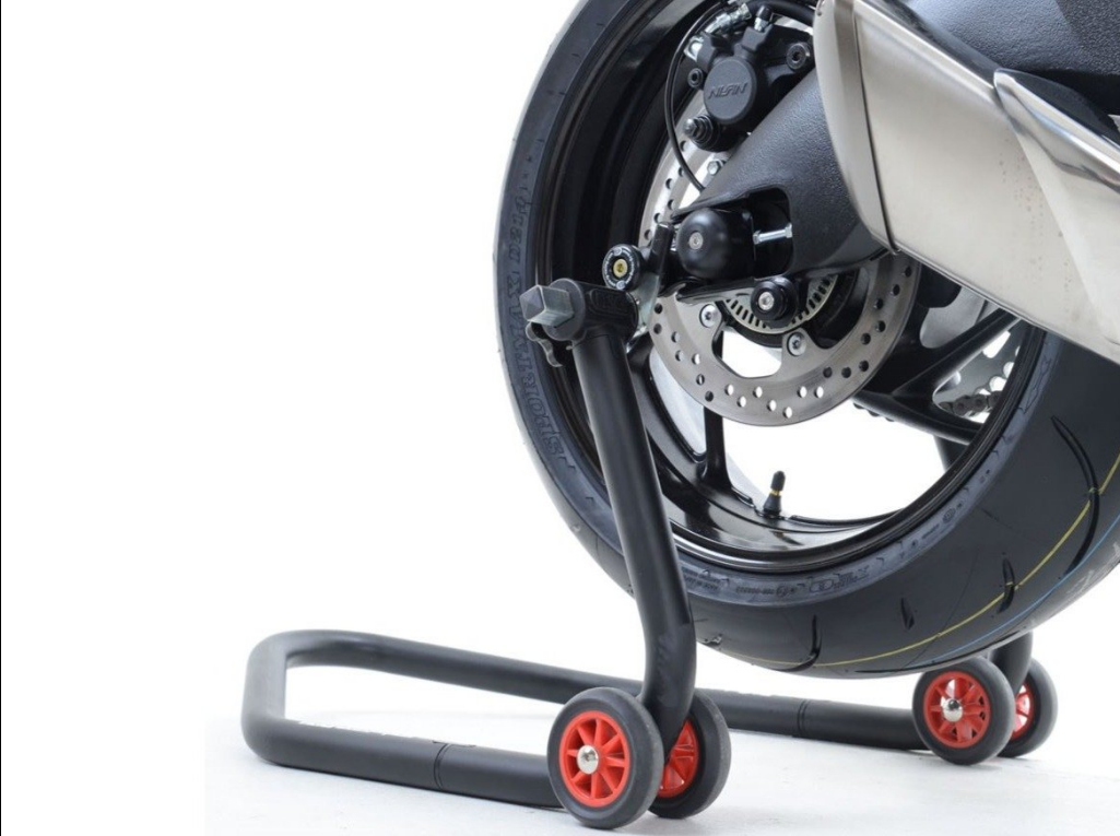 Due to the position that the cotton reel is mounted, these protectors give protection to the swingarm area and therefore this product has double usage as the bike can still be lifted with a paddock stand on the cotton reel.