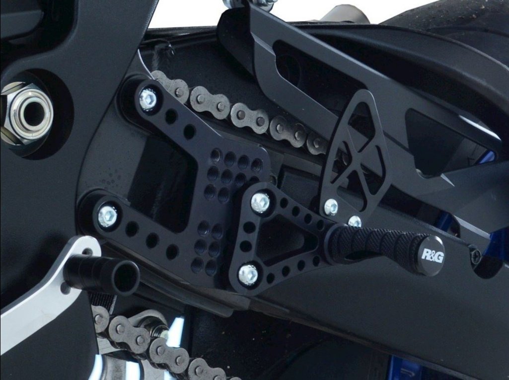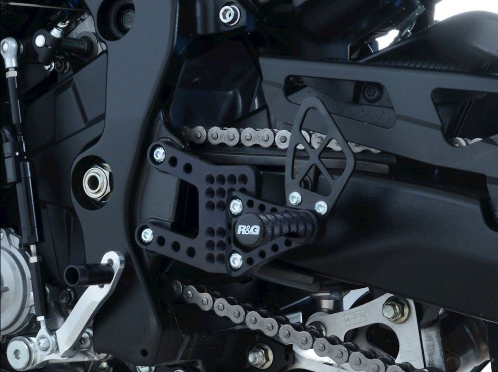 Adjustable rearsets by R&G Racing for Suzuki GSX-R1000.