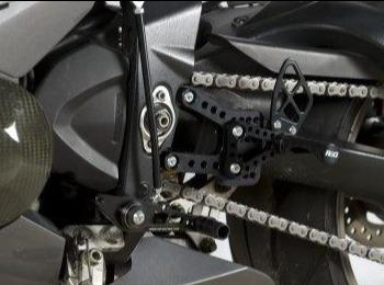 Adjustable rearsets by R&G Racing for Triumph Daytona 675.