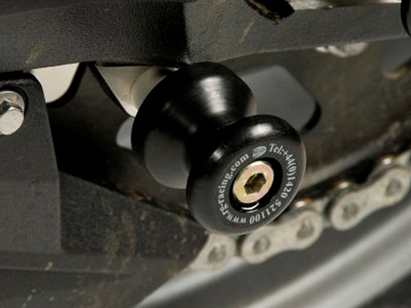 They offer the dual purpose of protecting your swingarm and enabling the bike to be lifted on a rear stand.
