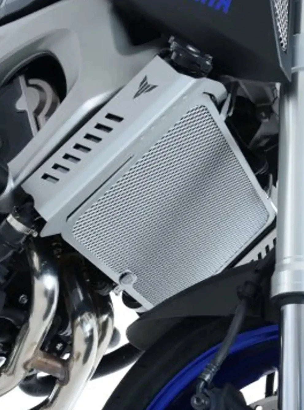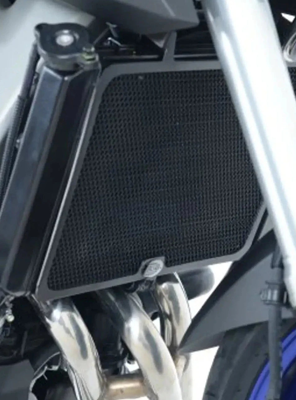 Radiator guard by R&G Racing for Yamaha MT-09 / XSR900 models.