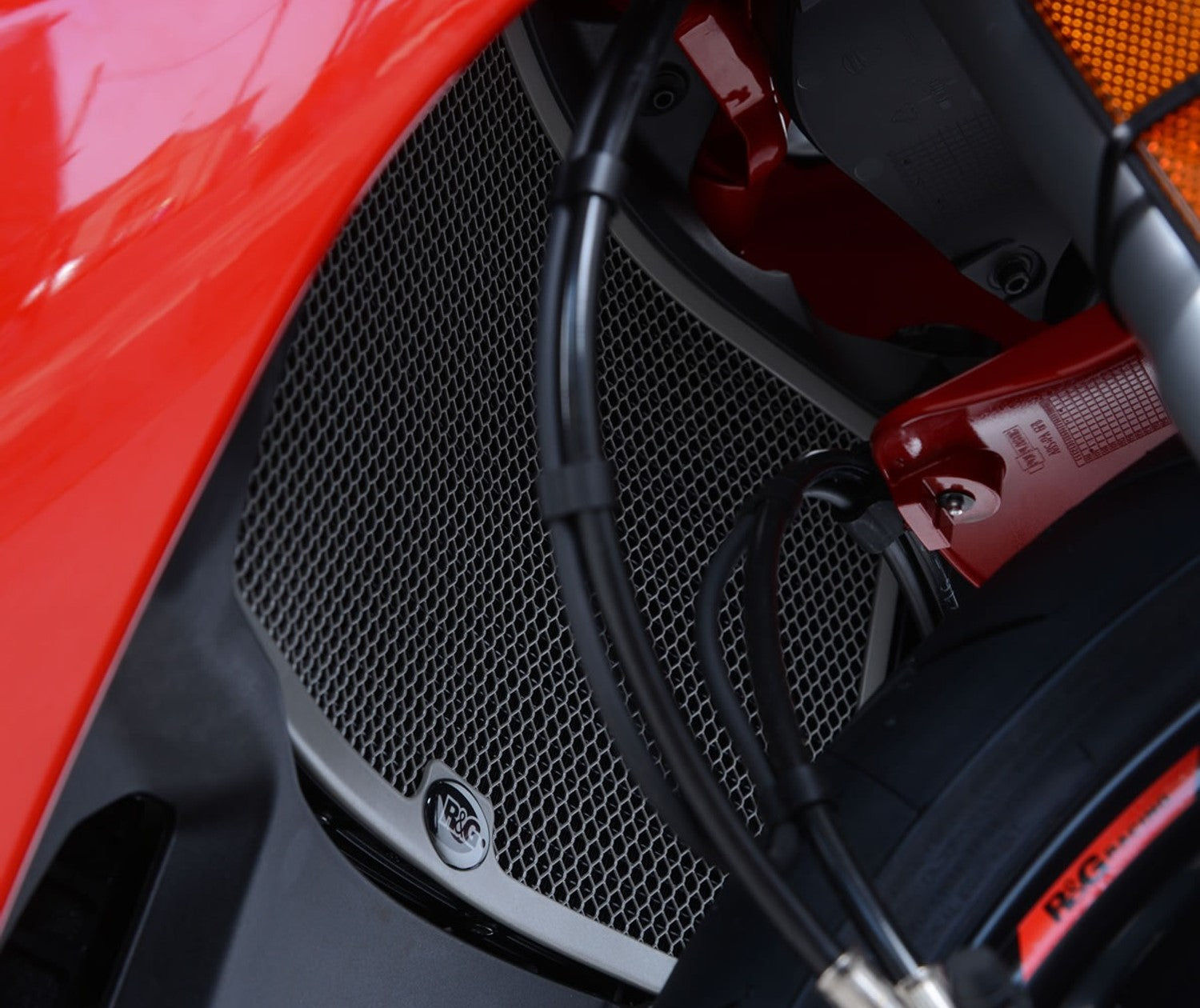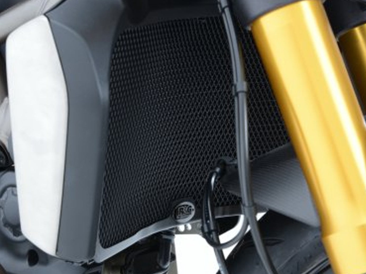 Radiator guard by R&G Racing for Ducati motorcycles.