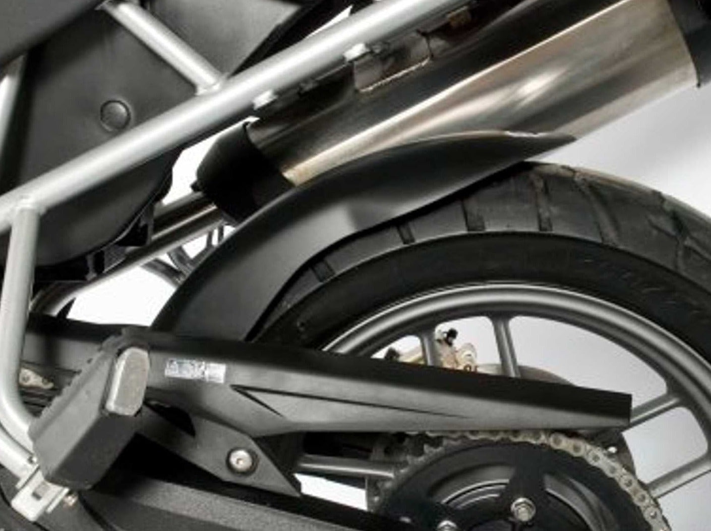 Features an integrated swingarm heel guard and scuff protector.