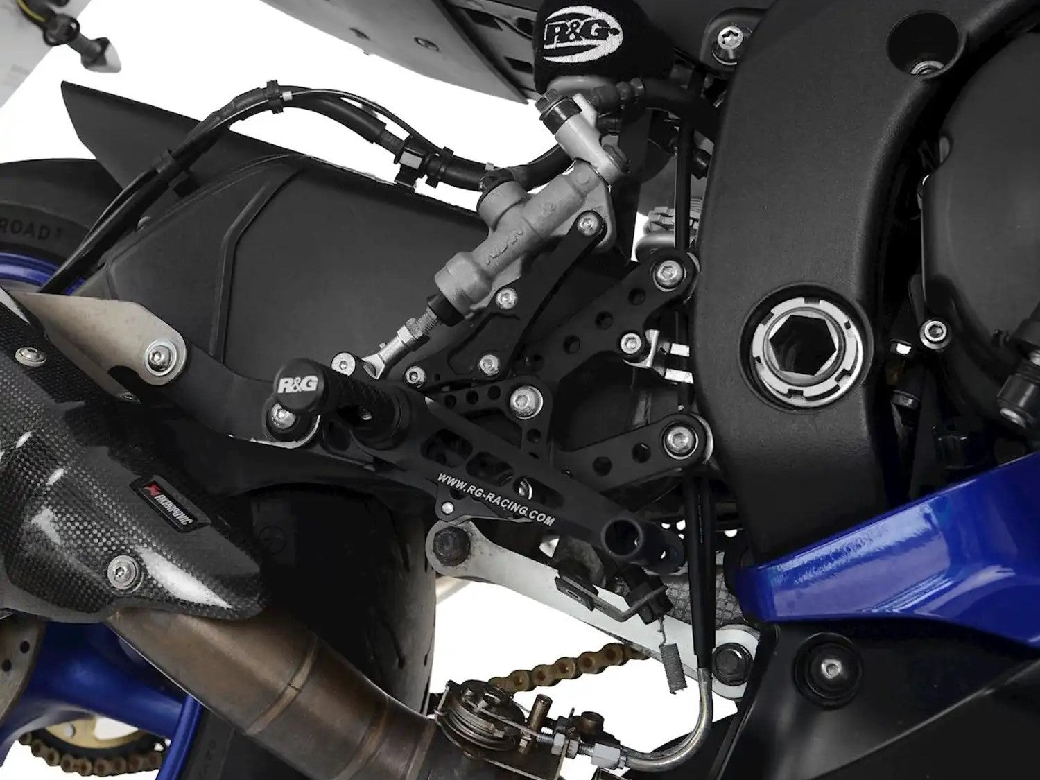 Adjustable rearsets by R&G Racing for Yamaha YZF-R6.