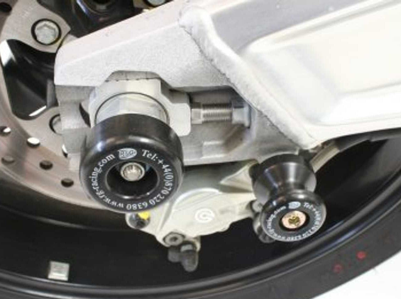 Rear wheel (swingarm) sliders by R&G Racing for KTM RC8 / RC8R.