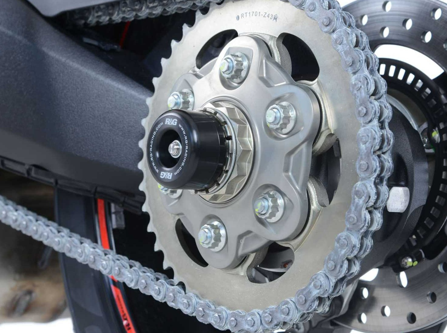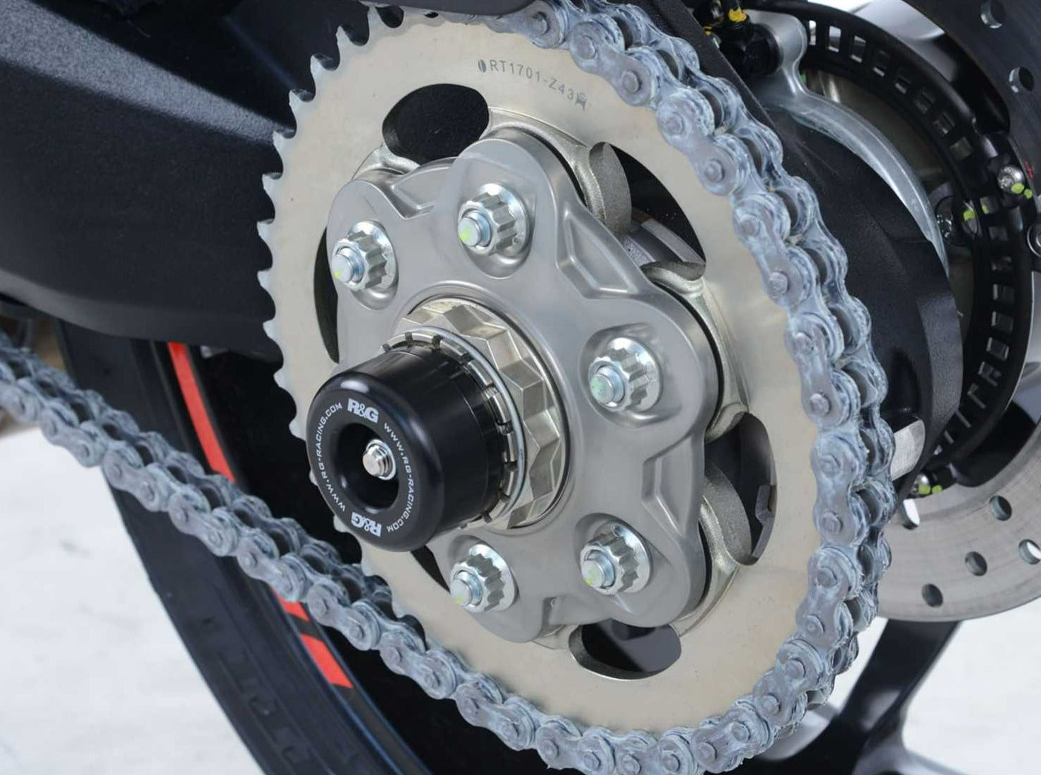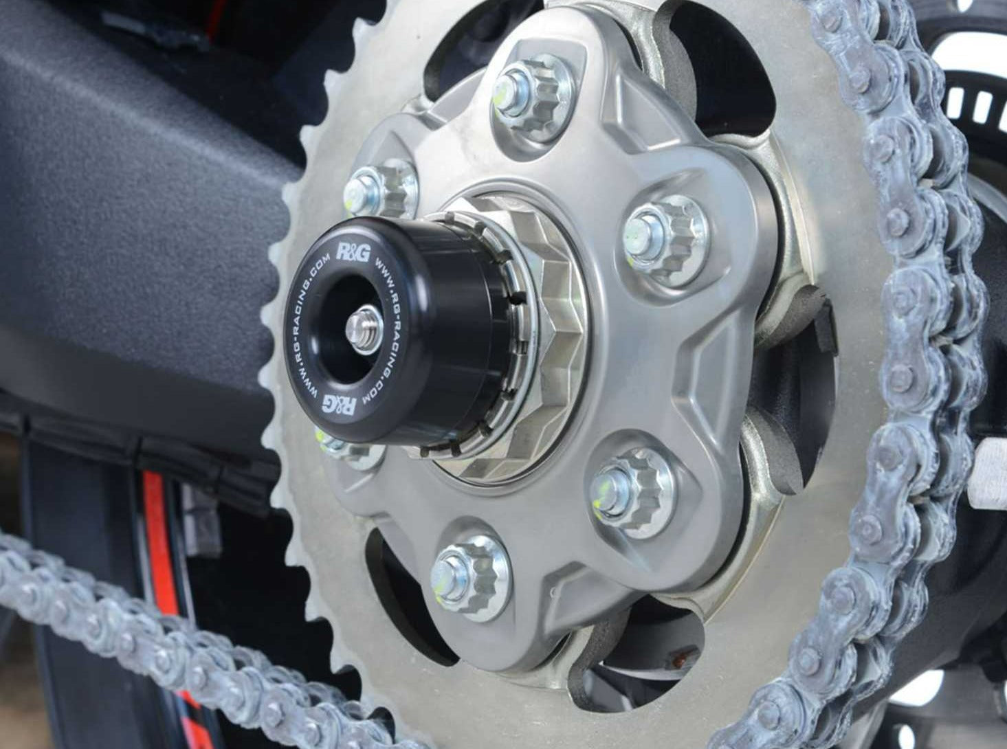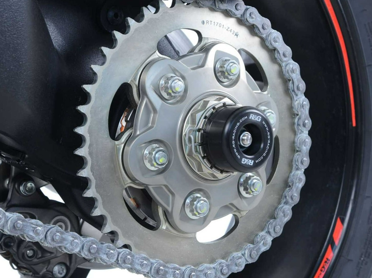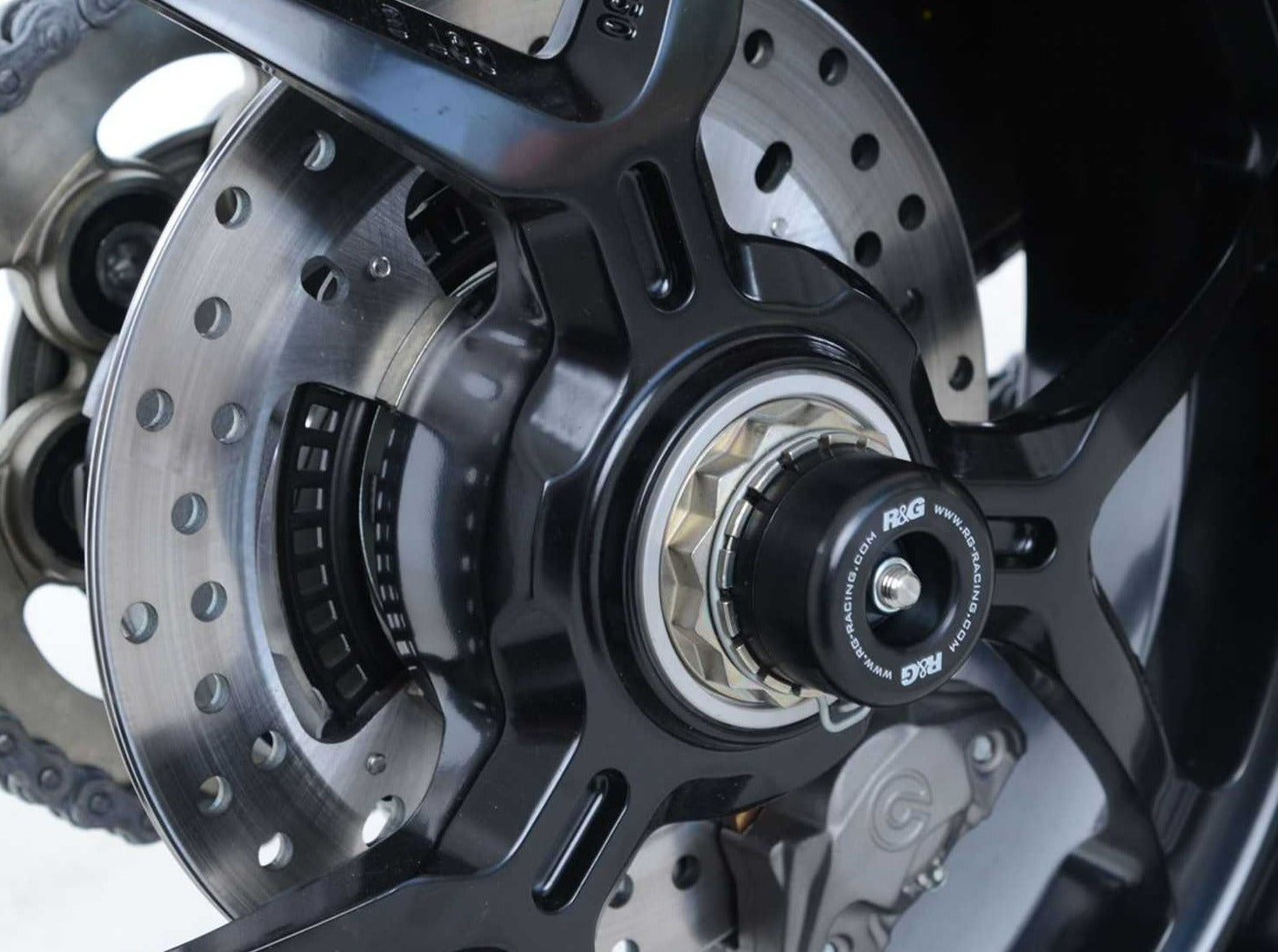 Rear wheel (swingarm) sliders by R&G Racing for Ducati models.