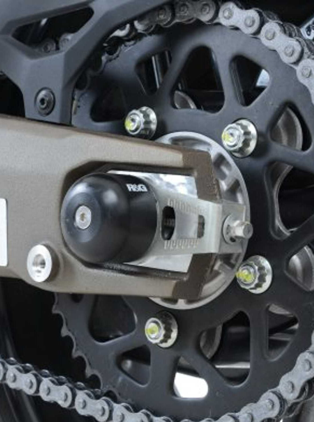 Rear wheel (swingarm) sliders by R&G Racing for Ducati Monster 821.