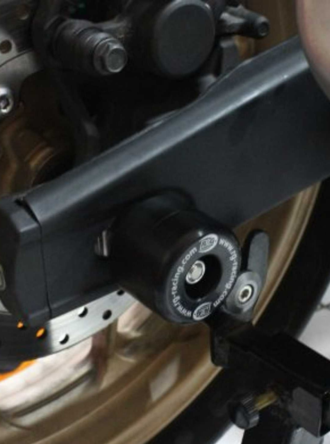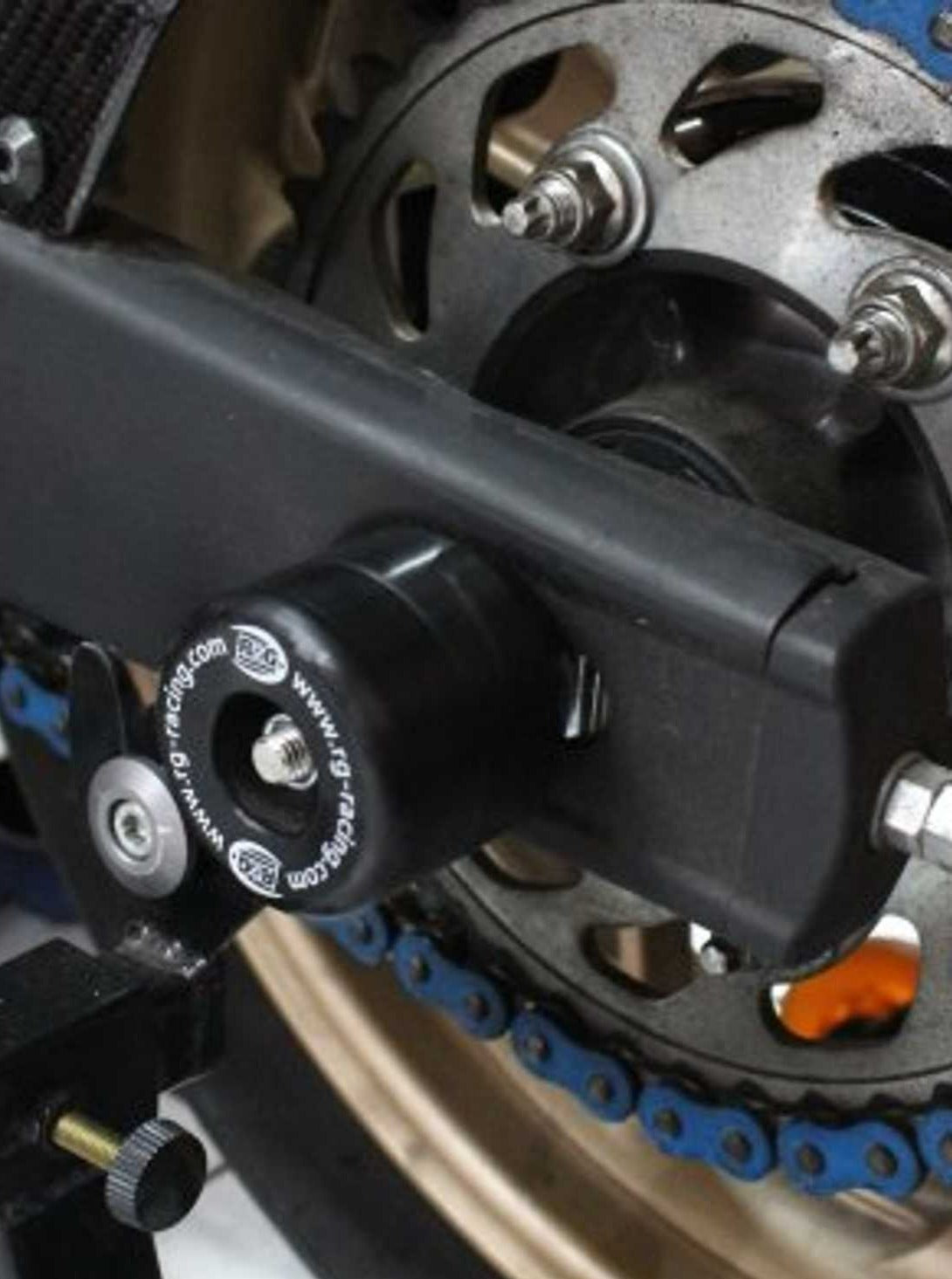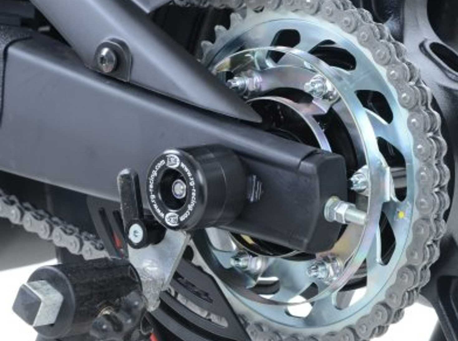 Rear wheel (swingarm) sliders by R&G Racing for Yamaha YZF / MT models.