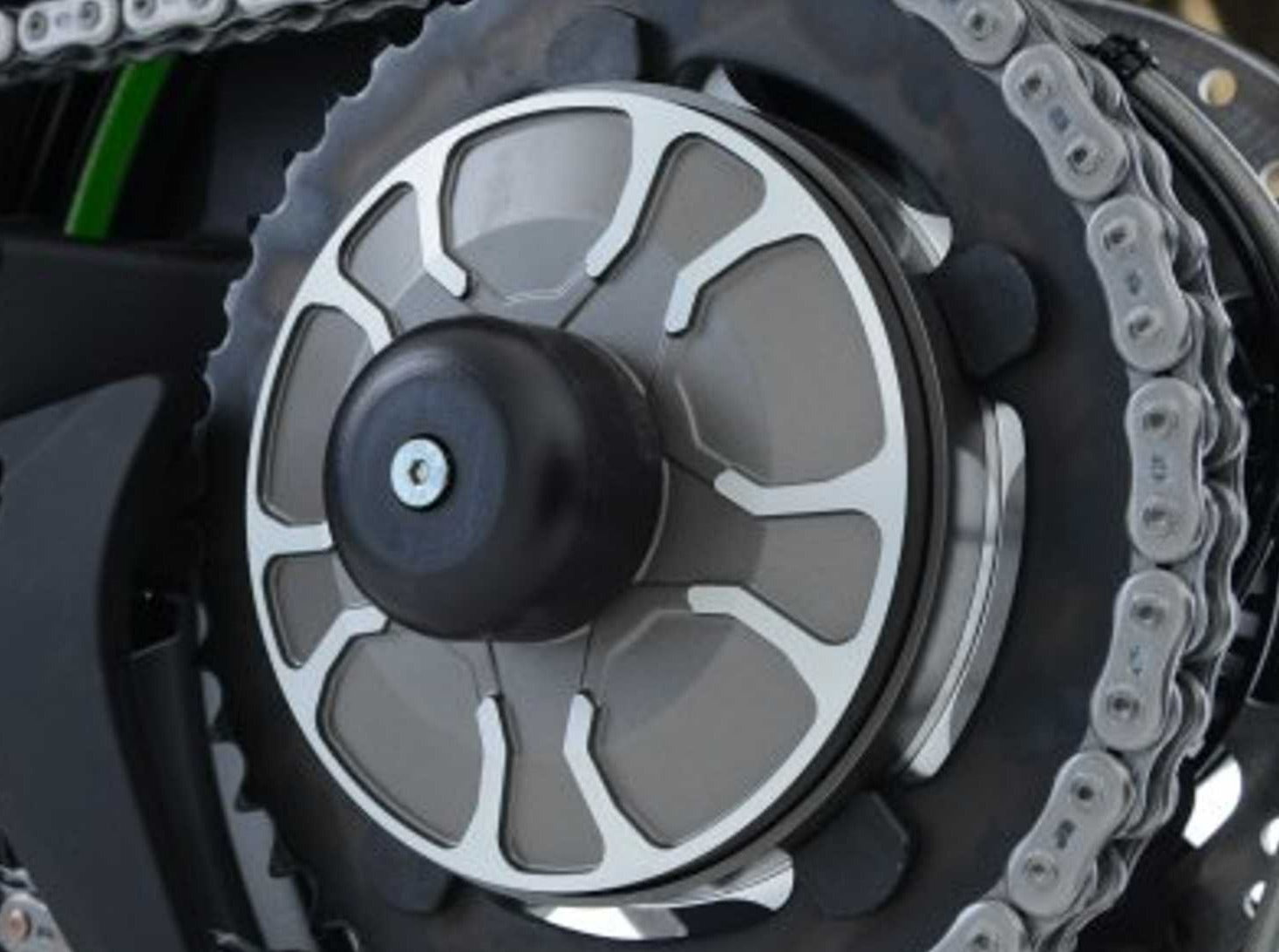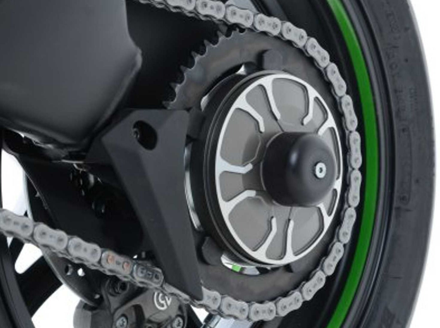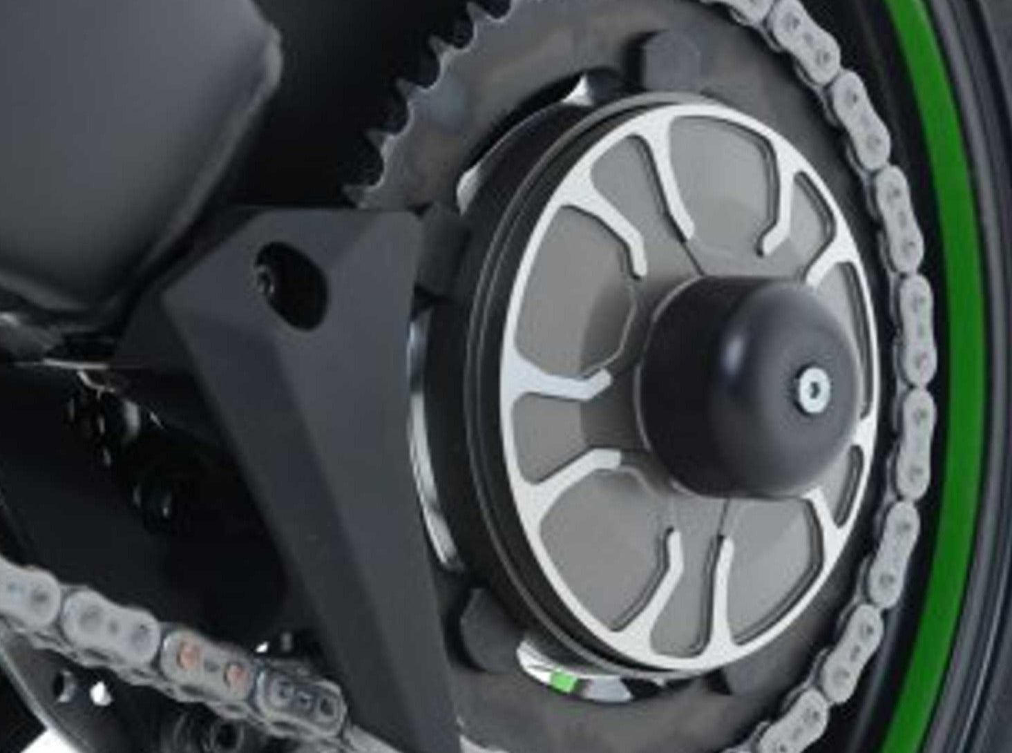 Rear wheel (swingarm) sliders by R&G Racing for Kawasaki H2 / H2R.
