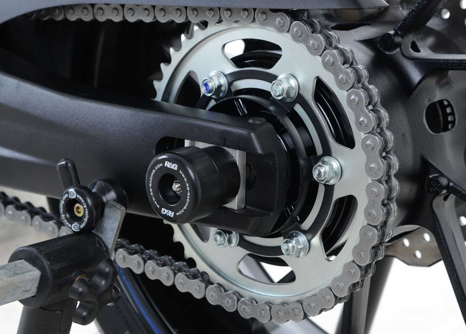 Rear wheel (swingarm) sliders by R&G Racing for Yamaha Tracer 700.