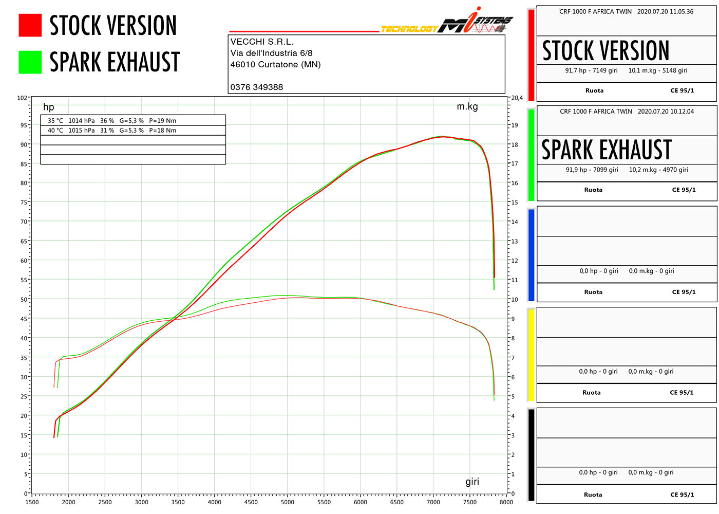 Sound (with Spark racing collector): 91 dB (3750 rpm) with dB Killer; 93 dB (3750 rpm) without dB Killer