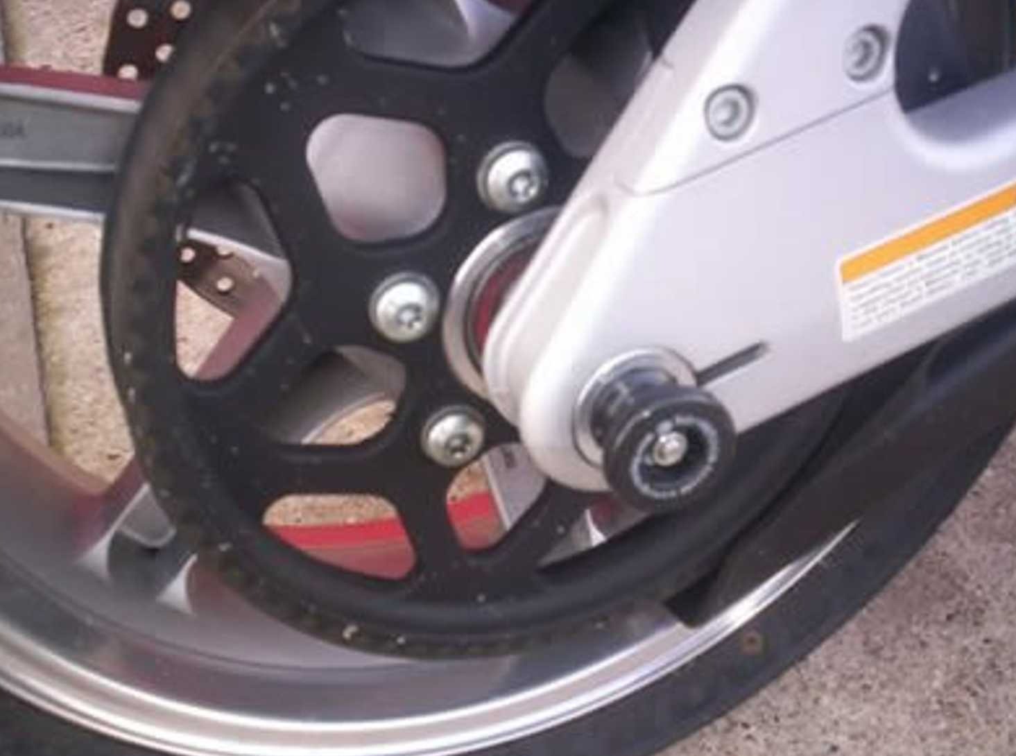 Rear wheel sliders (paddock stand bobbins) by R&G Racing for Buell XB12 / XB9 models.