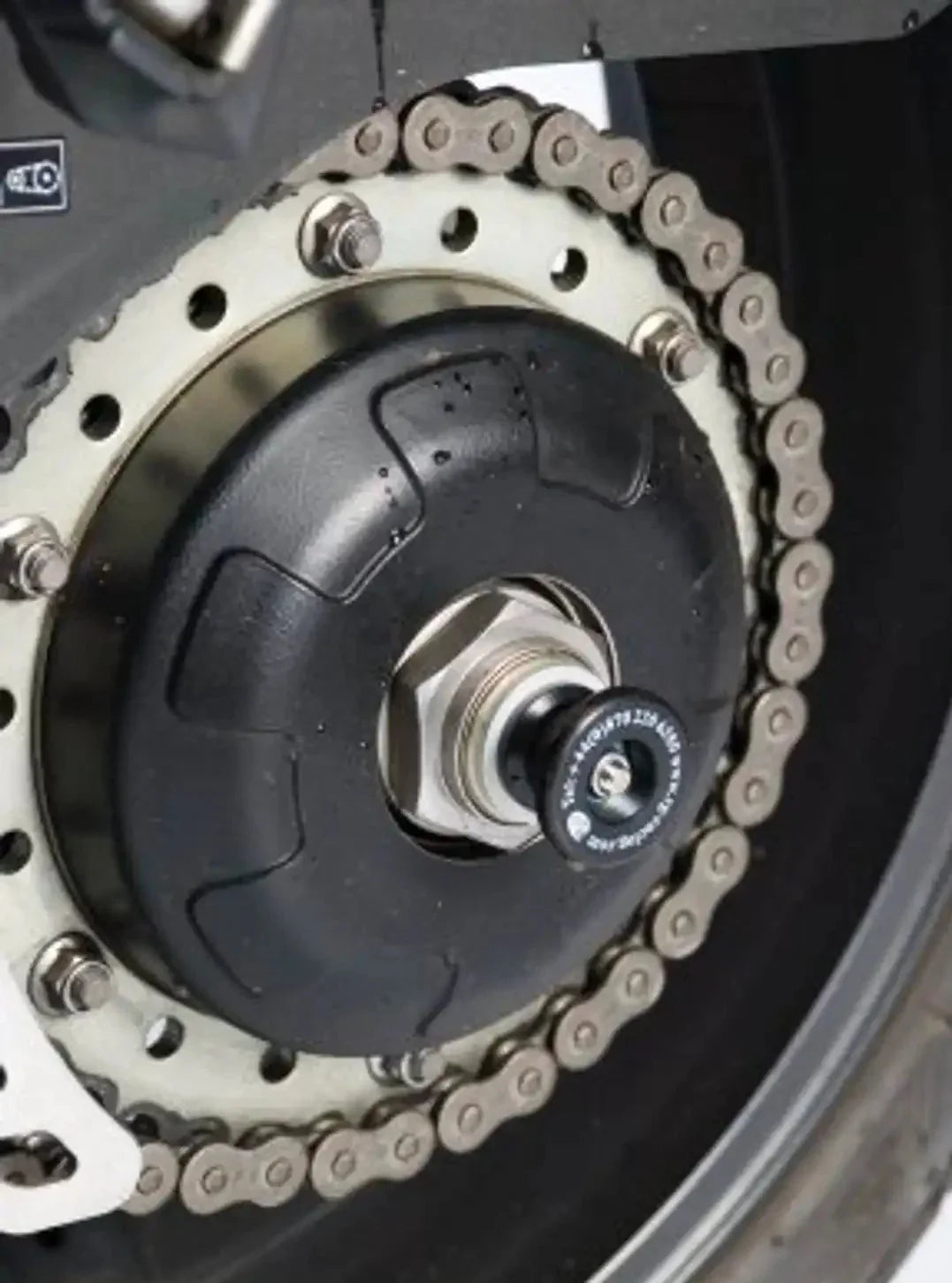 Rear wheel sliders (paddock stand bobbins) by R&G Racing for Triumph motorcycles.