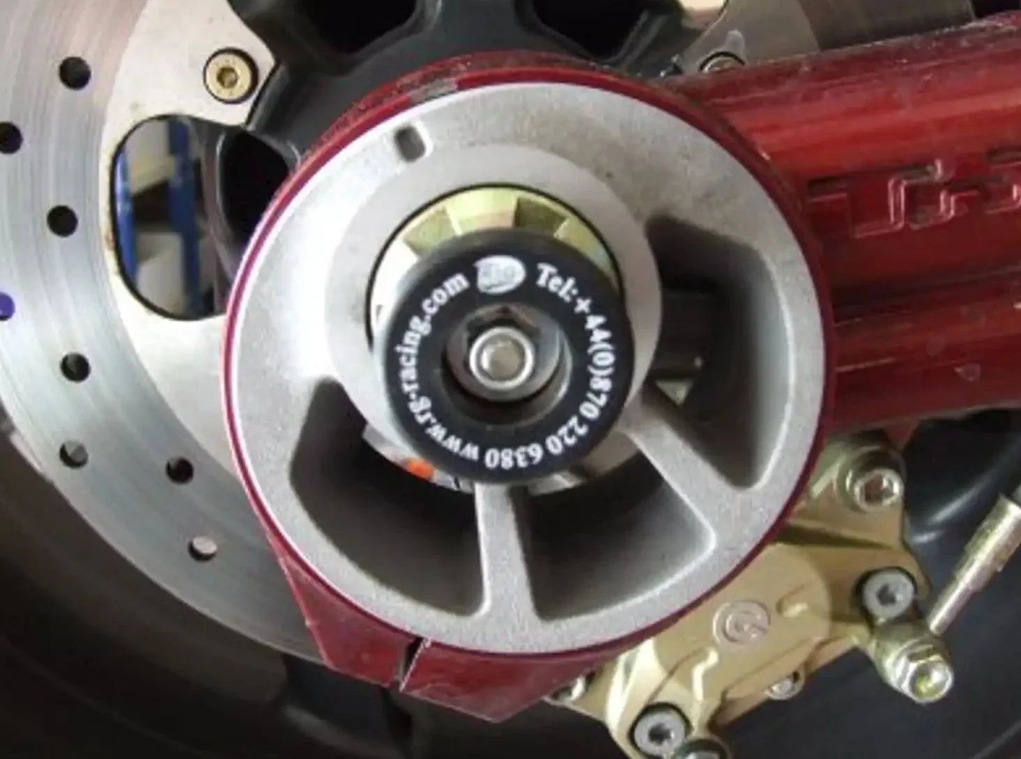 These sliders are similar to the cotton reels (paddock stand bobbins), but fit through the rear wheel spindle.
