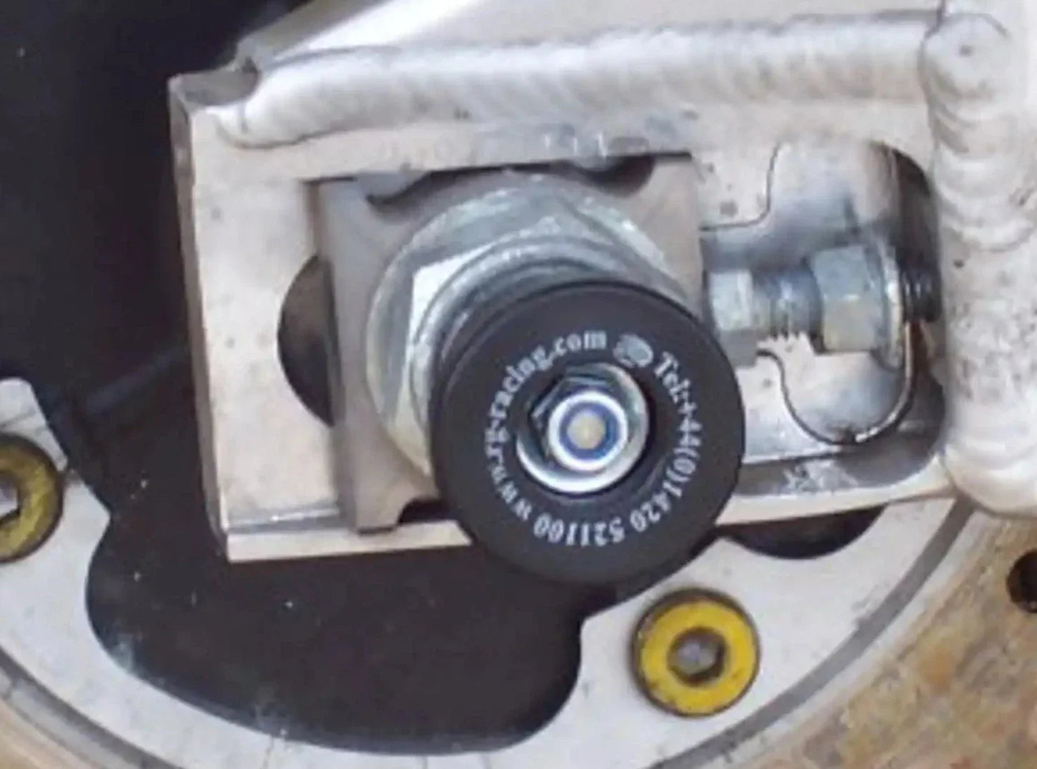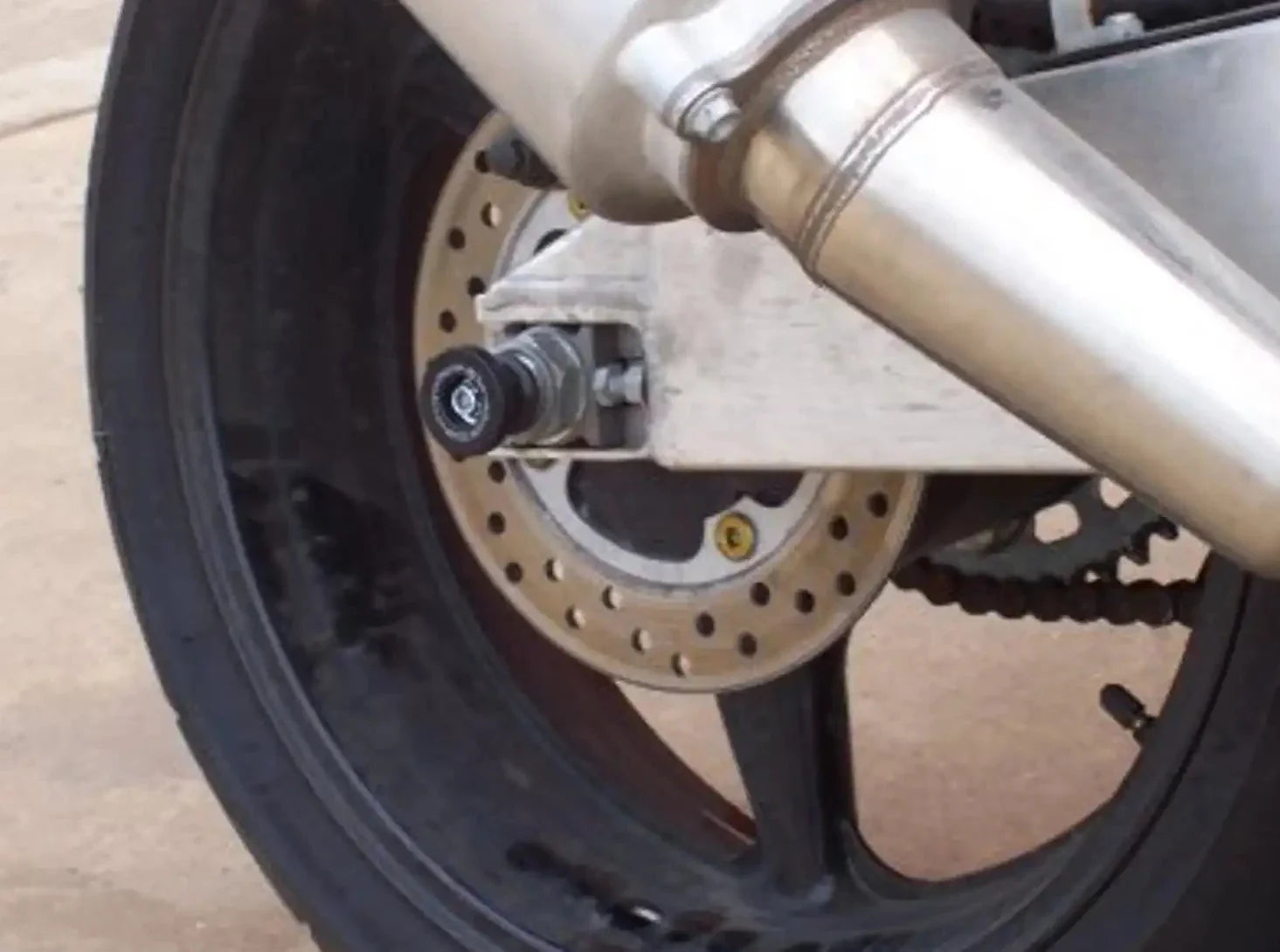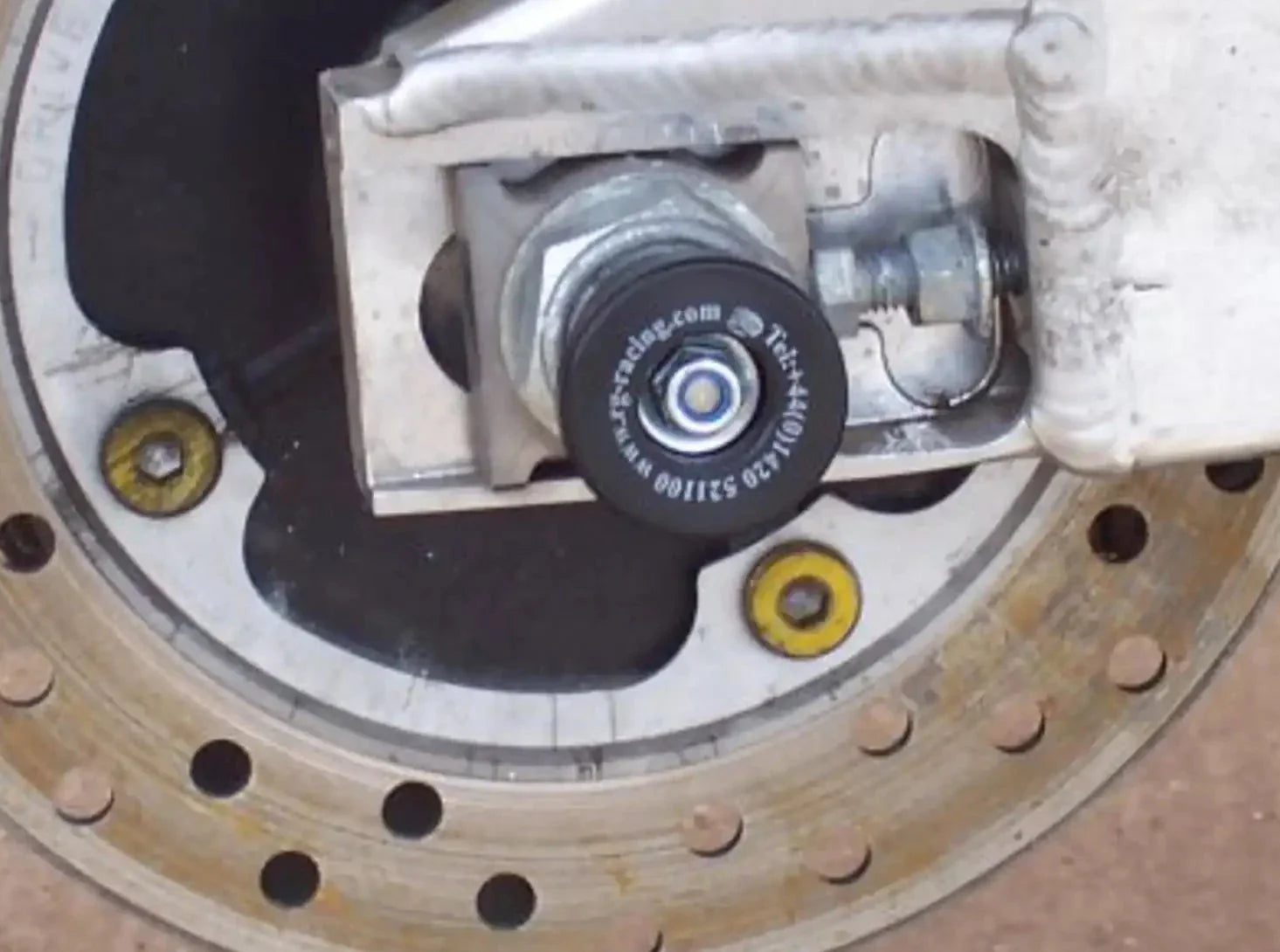These sliders are similar to the cotton reels (paddock stand bobbins), but fit through the rear wheel spindle.