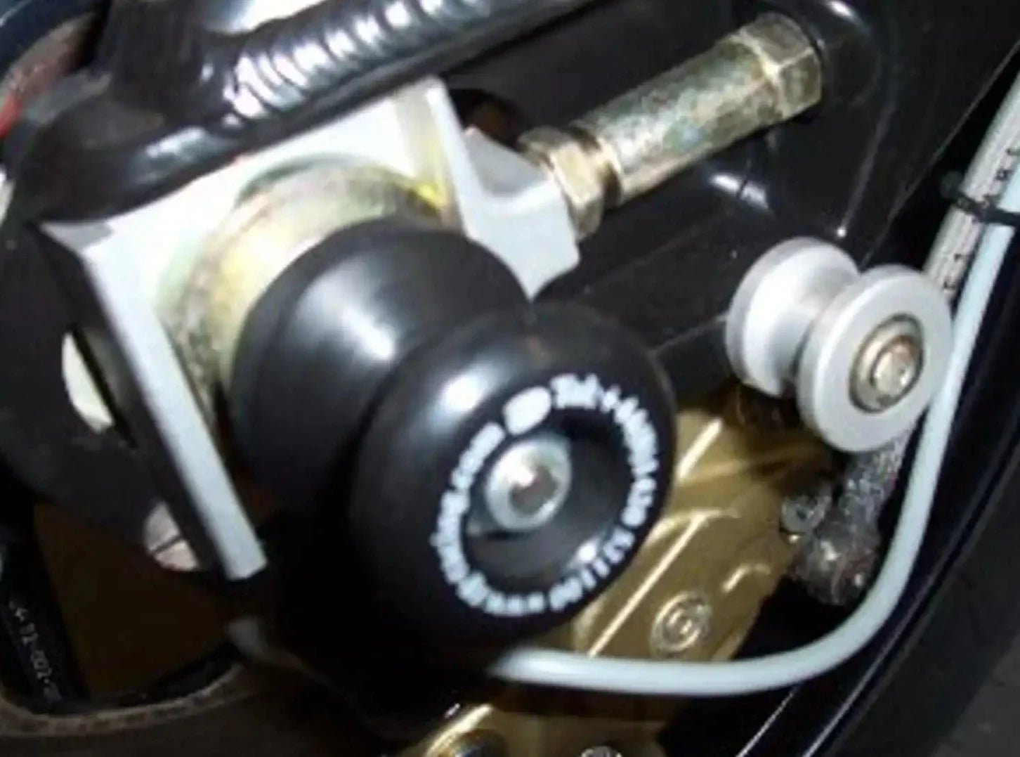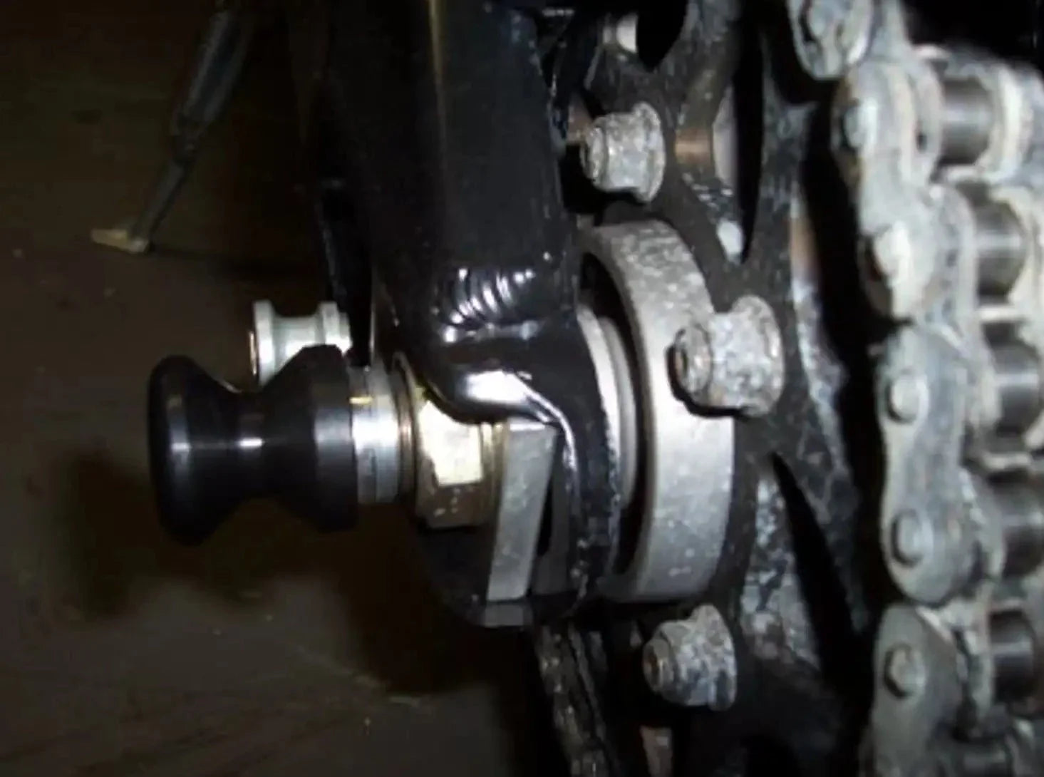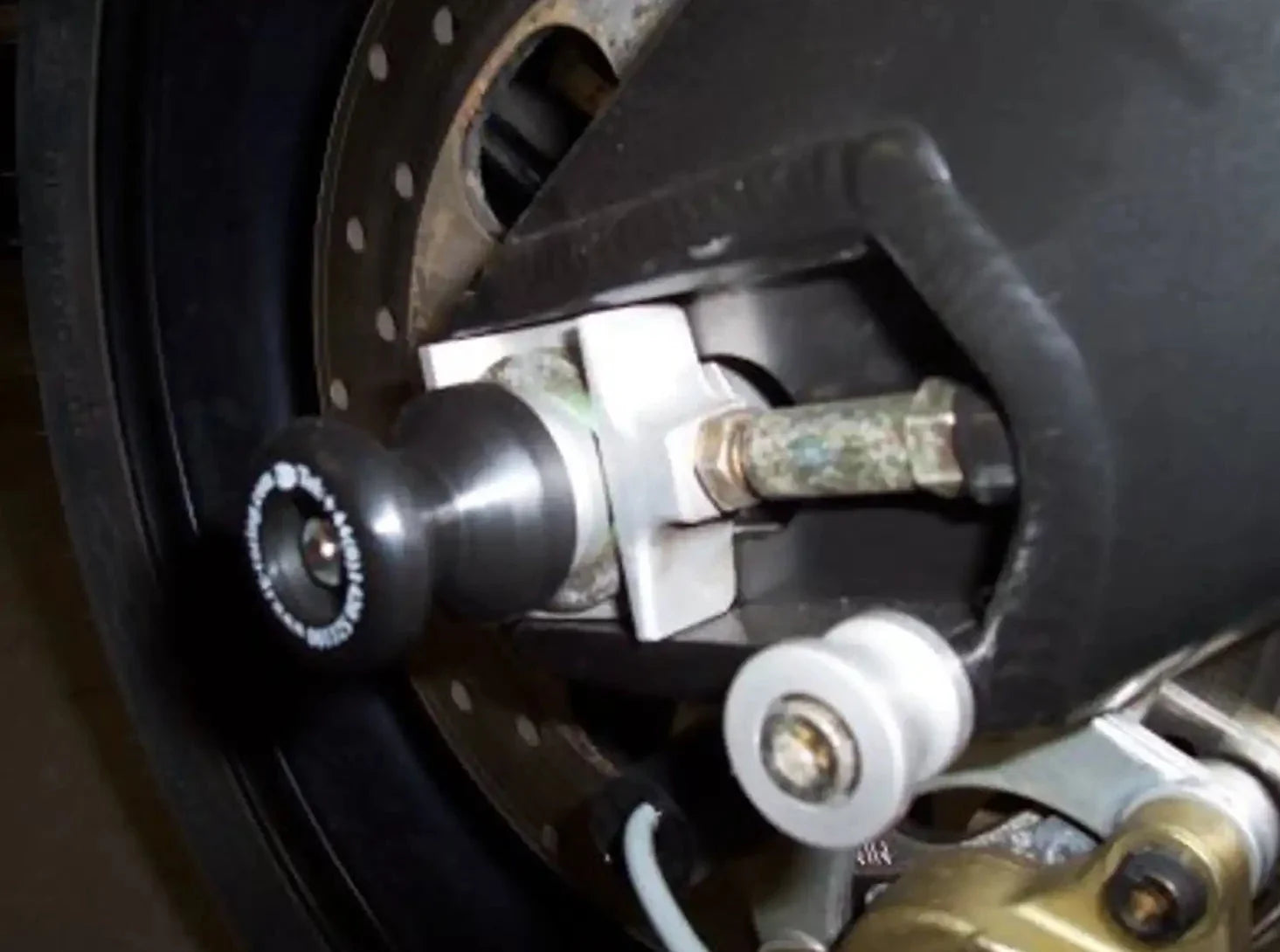These sliders are similar to the cotton reels (paddock stand bobbins), but fit through the rear wheel spindle.