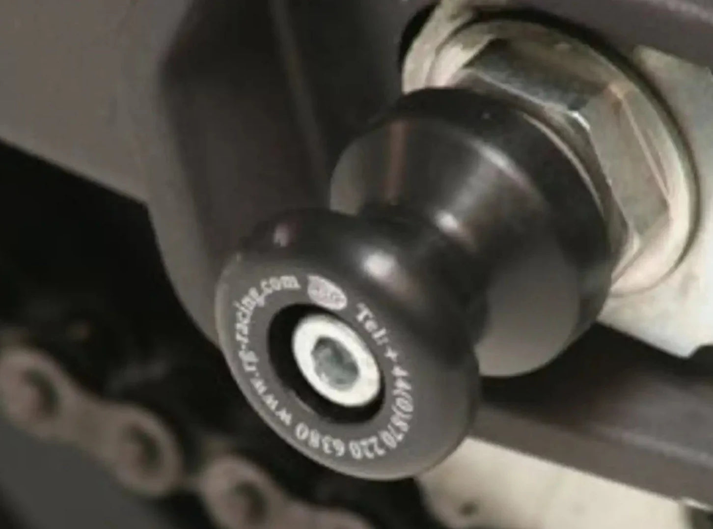 These sliders are similar to the cotton reels (paddock stand bobbins), but fit through the rear wheel spindle.