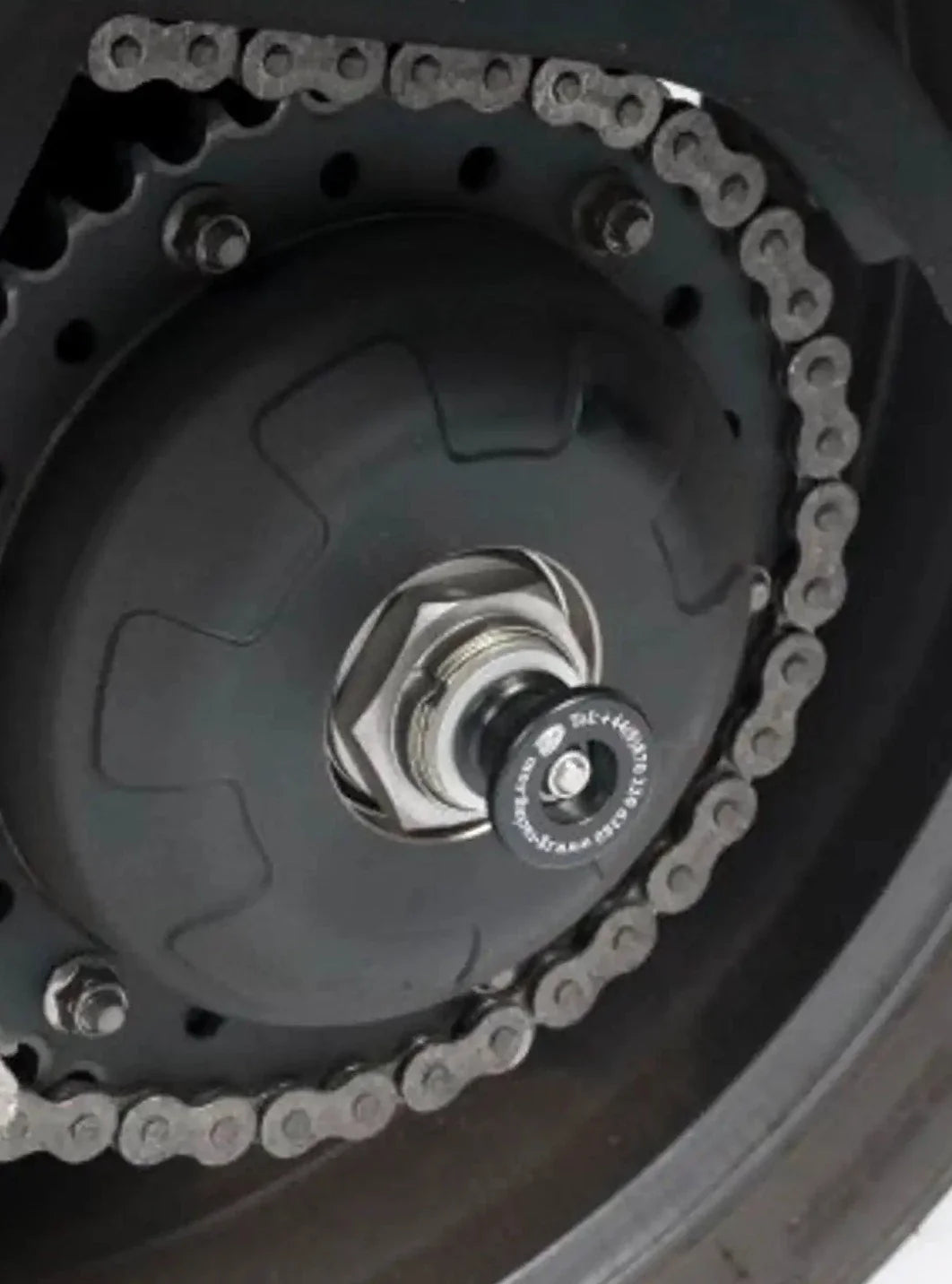 Rear wheel sliders (paddock stand bobbins) by R&G Racing for Triumph Sprint GT.