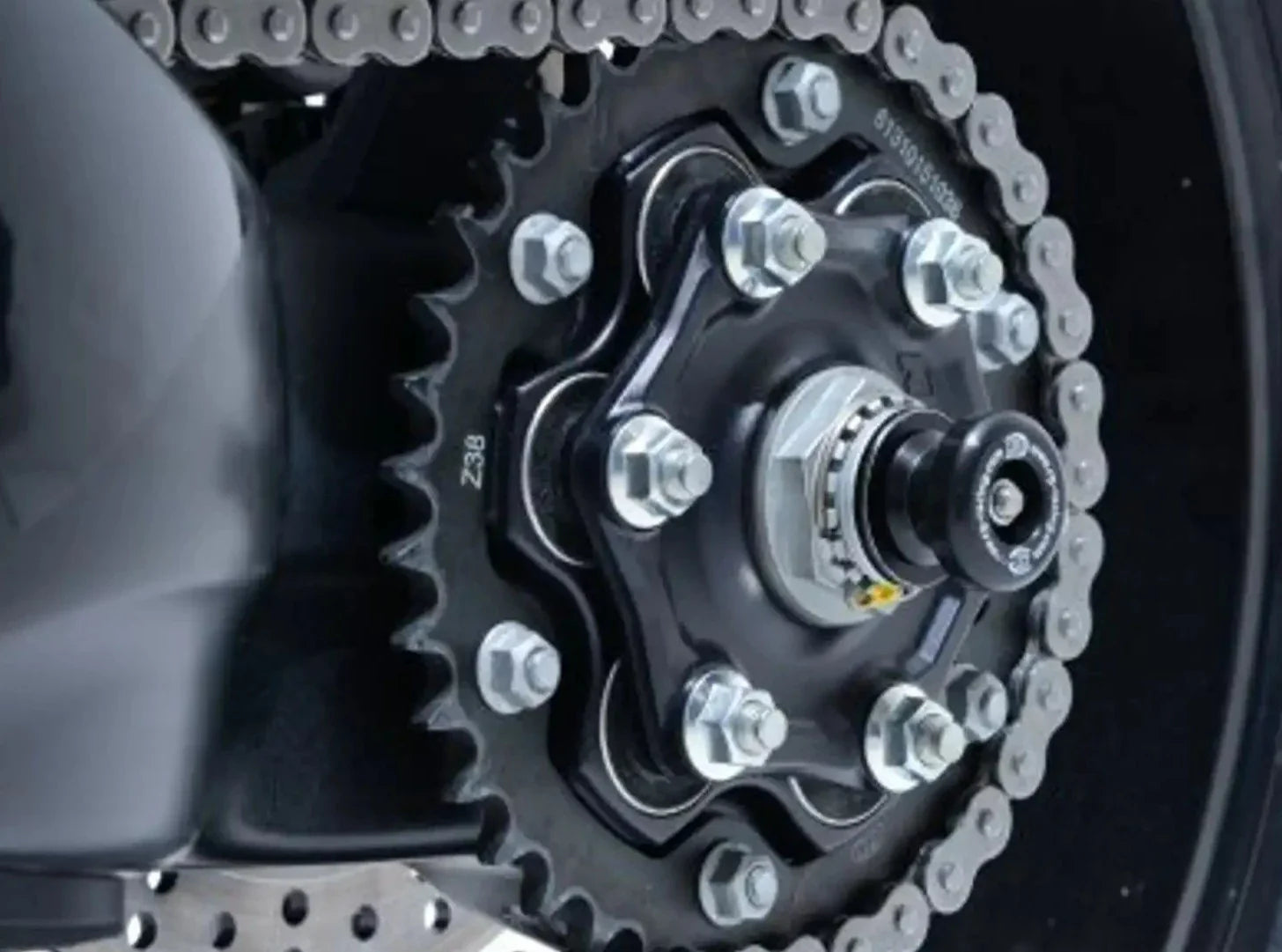 These sliders are similar to the cotton reels (paddock stand bobbins), but fit through the rear wheel spindle.