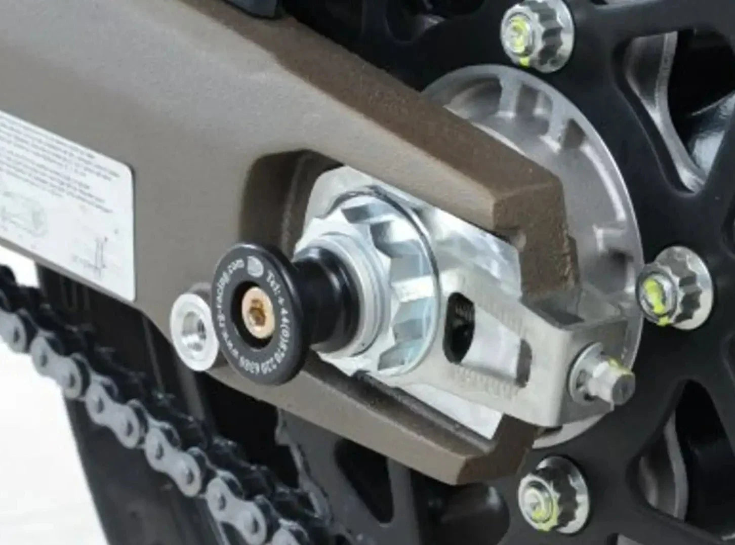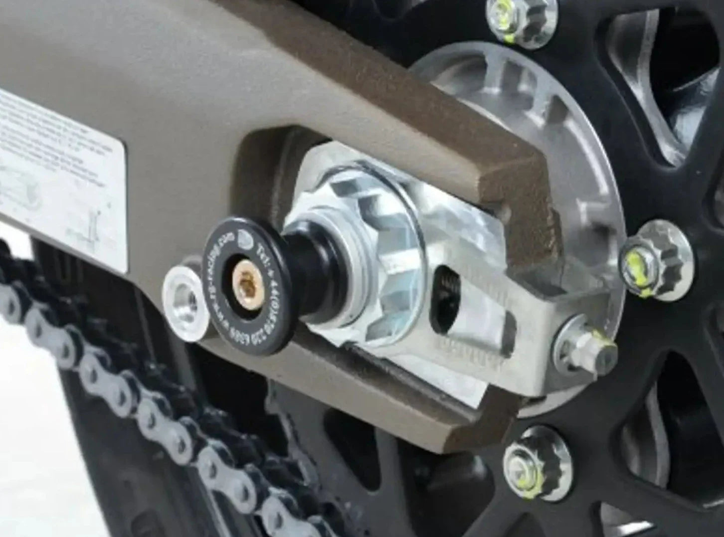 These sliders are similar to the cotton reels (paddock stand bobbins), but fit through the rear wheel spindle.