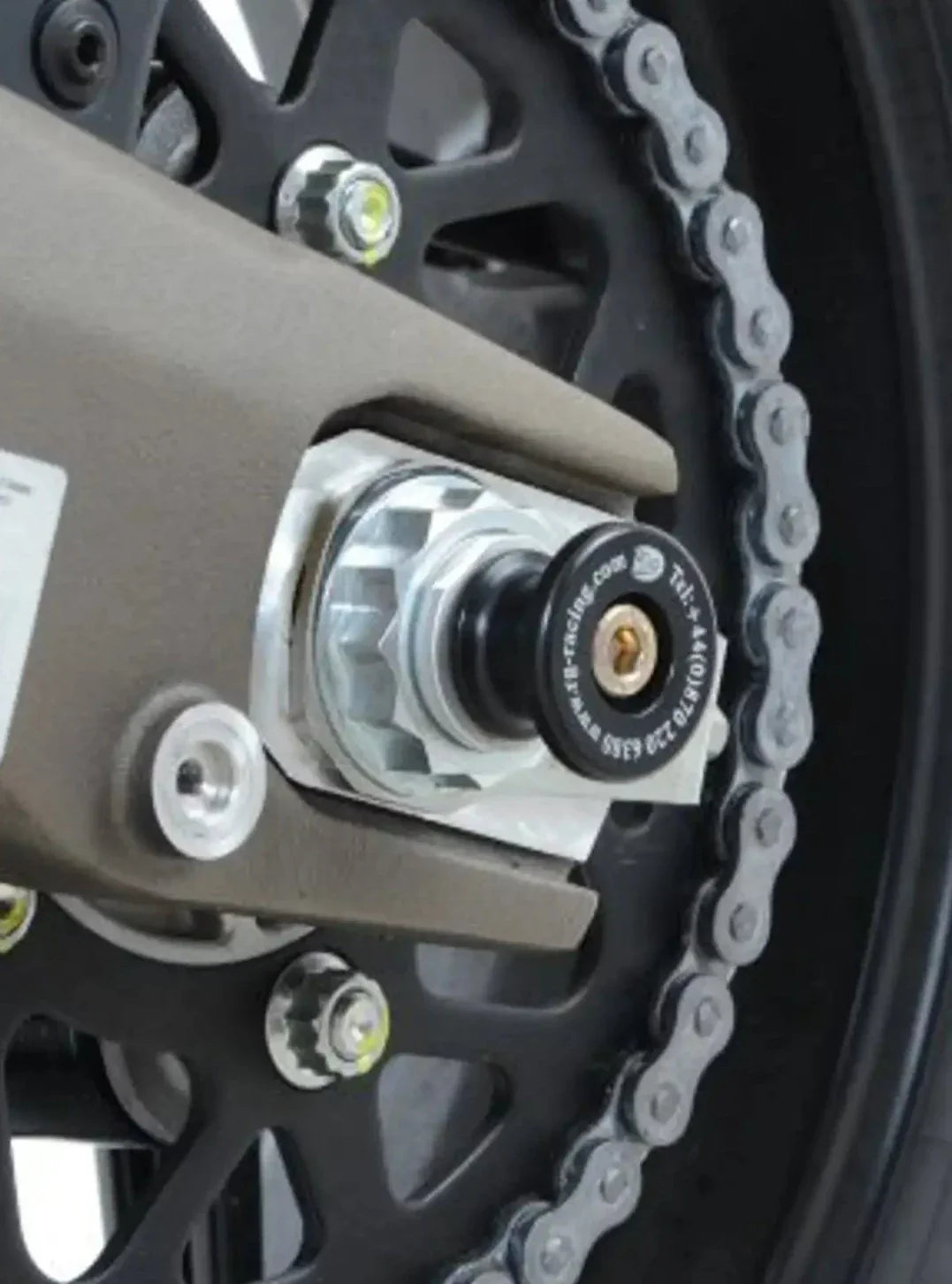 Rear wheel sliders (paddock stand bobbins) by R&G Racing for Ducati motorcycles.