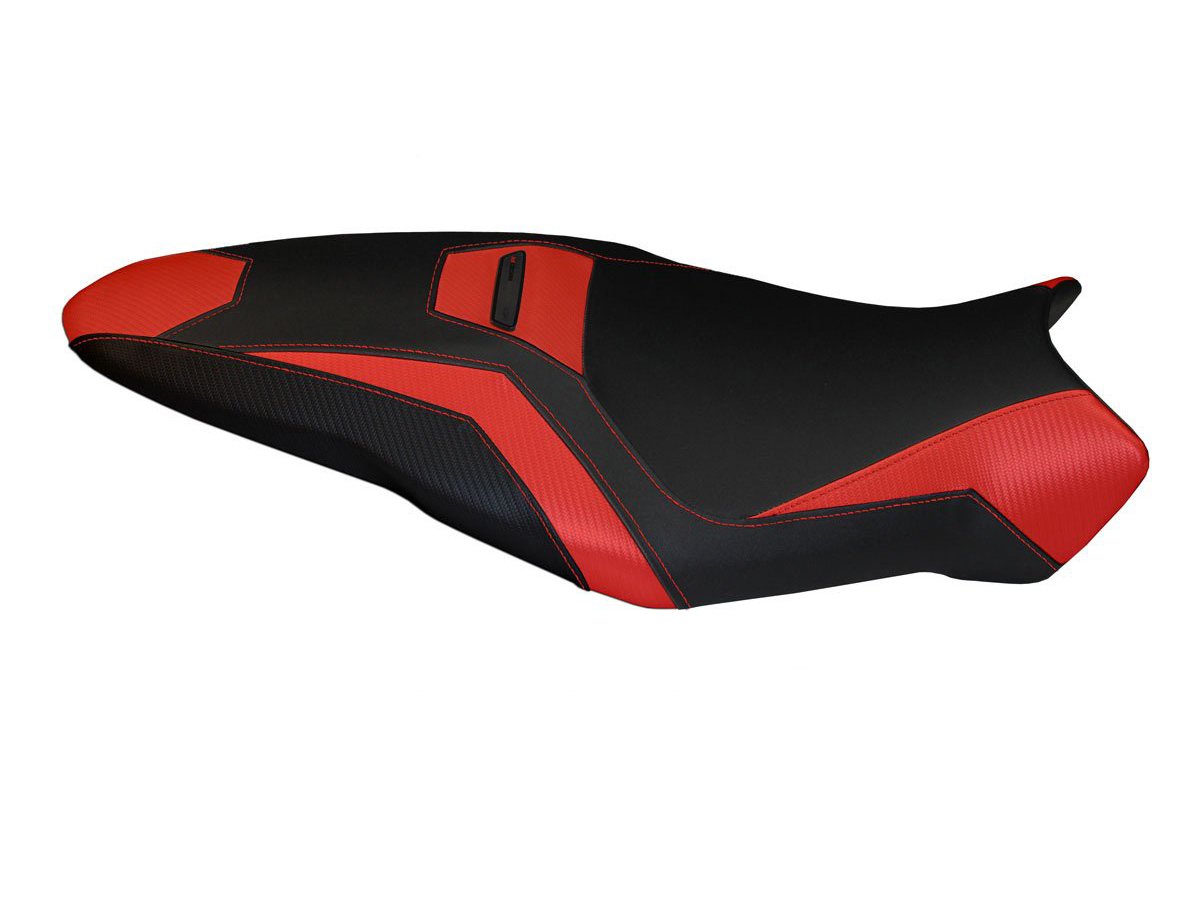 Exclusive seat cover made of black non-slip material. Laterals in black carbon look and inserts.
